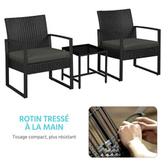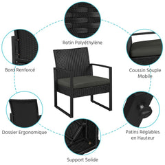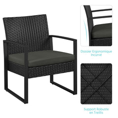 2 fauteuils et table basse de jardin en Poly Rotin et Métal