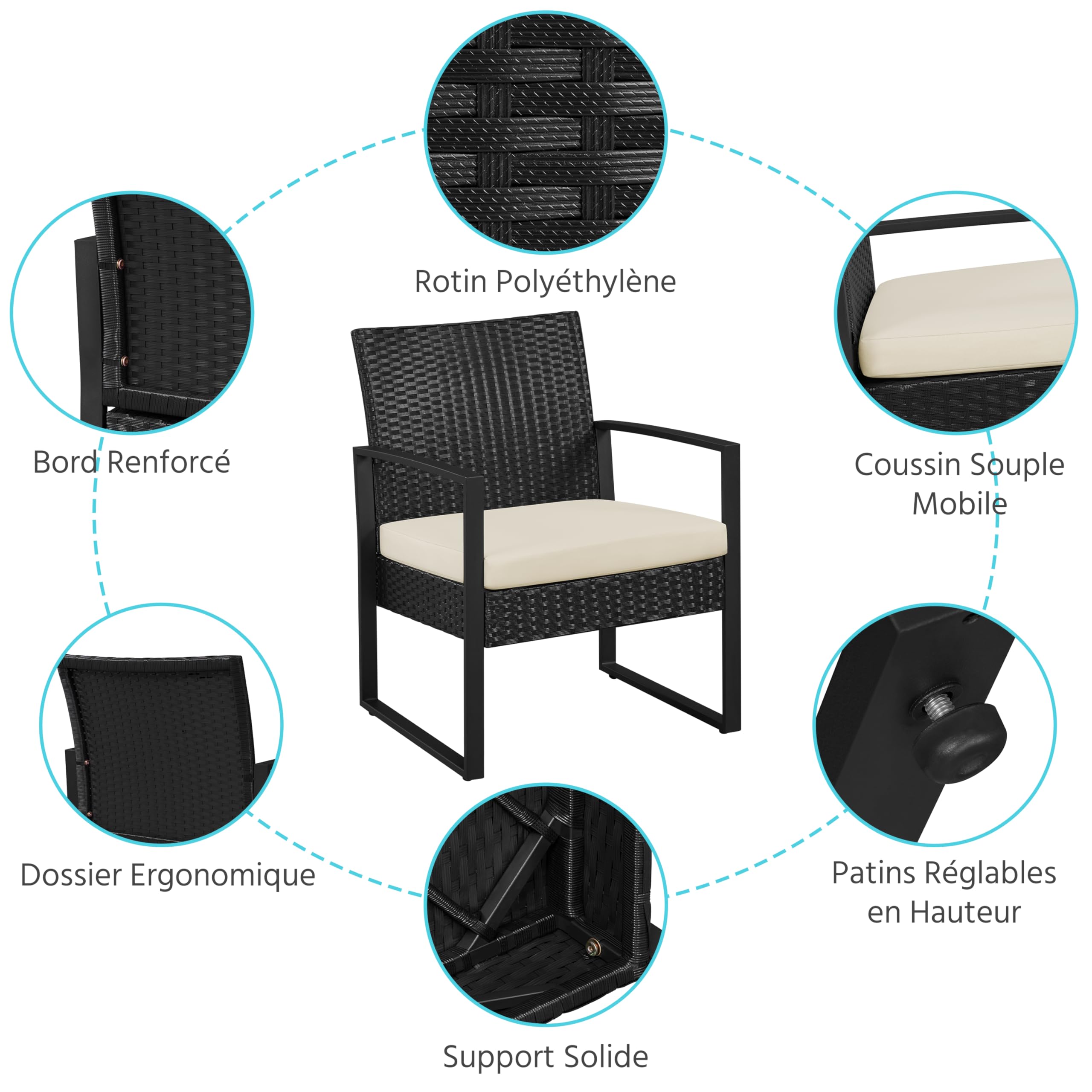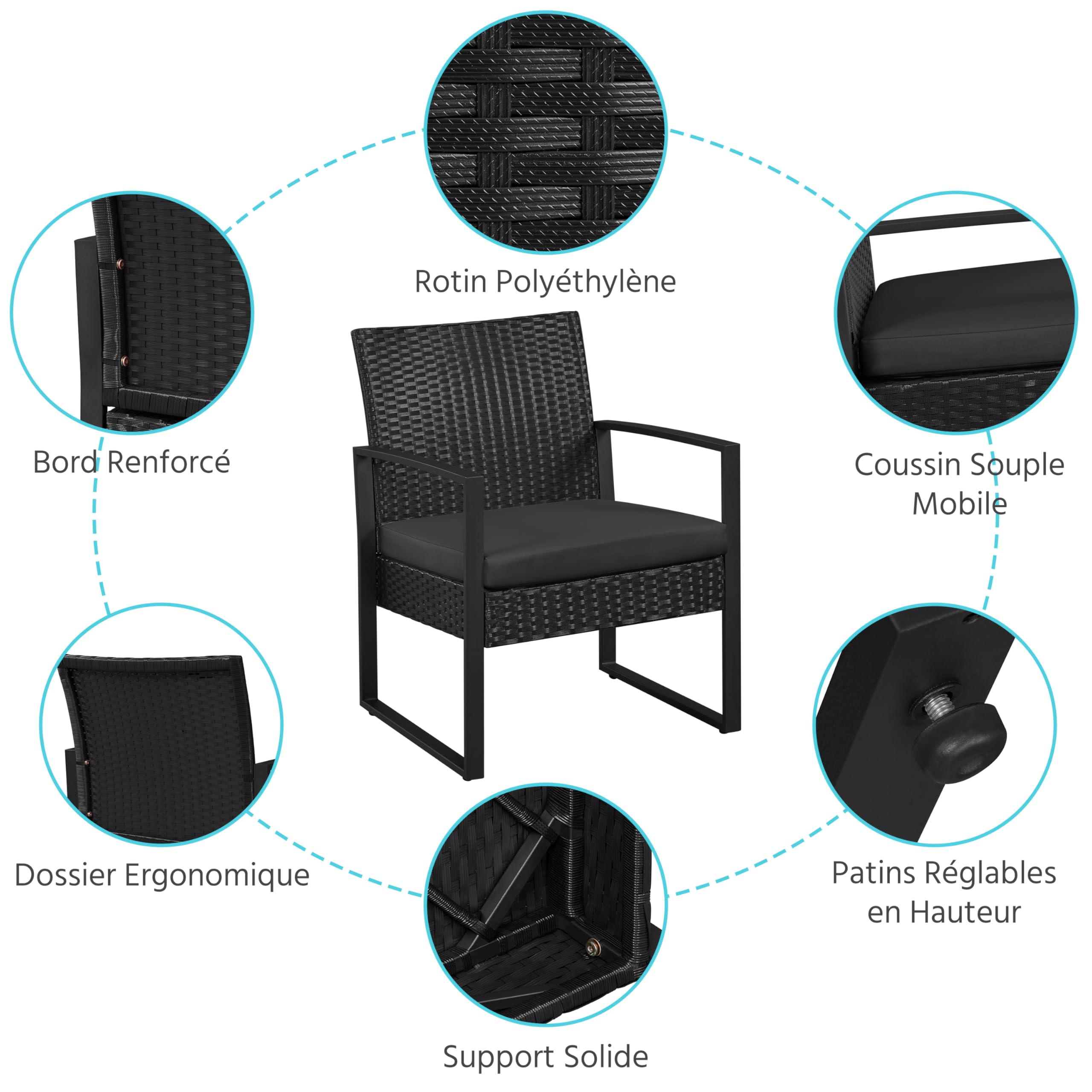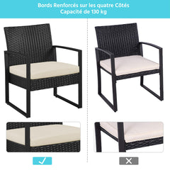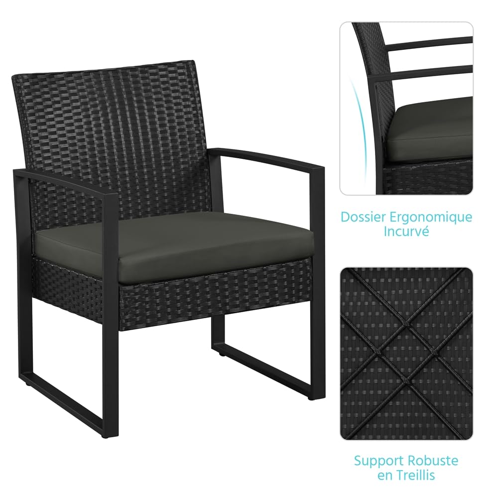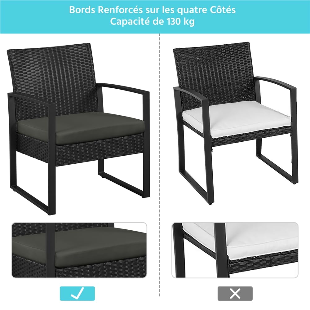 - Siège cosy avec coussins rembourrés : Chaque fauteuil de jardin a un dossier incurvé, une assise profonde de 51,5 cm et un coussin en mousse pour reposer votre corps. Il vous gardera au frais grâce au rotin tressé et à la housse respirante en polyester