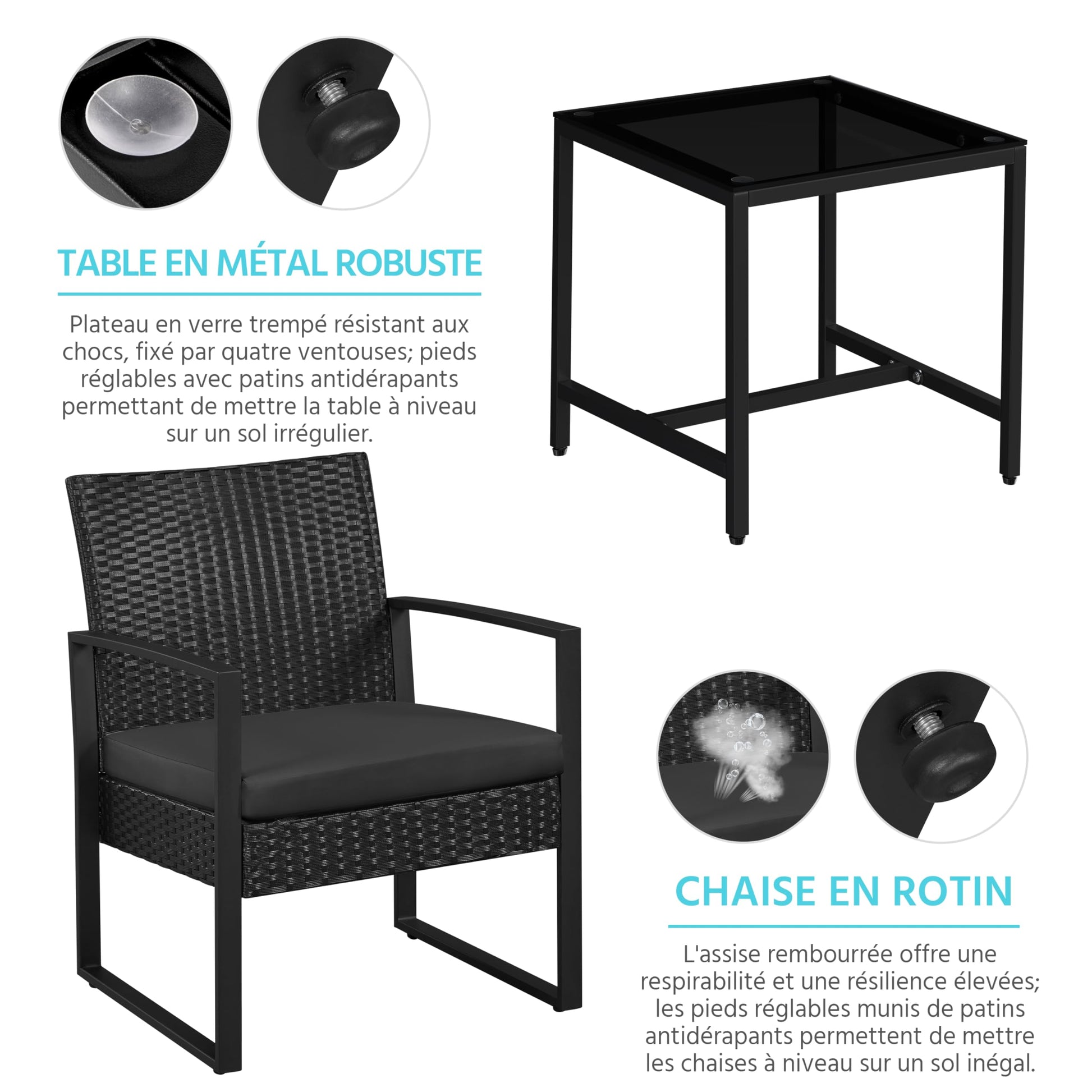 - Salon de jardin extérieur : Tressé par le rotin synthétique, notre salon de jardin en osier résiste aux intempéries. Avec des coussins amovibles à fermeture éclair, il permet un nettoyage pratique, ainsi que le plateau en verre trempé