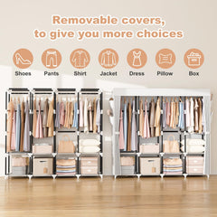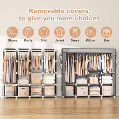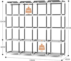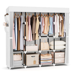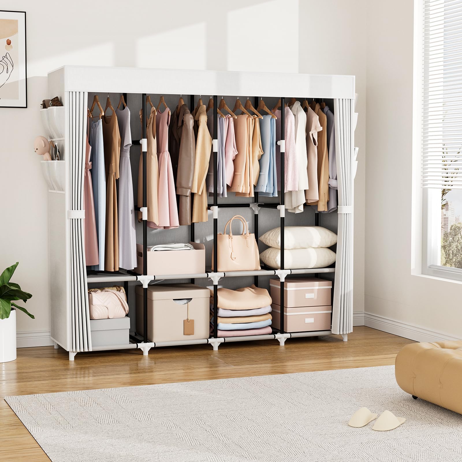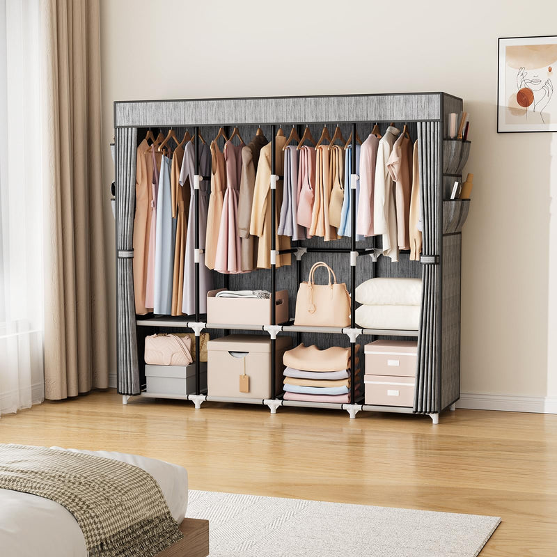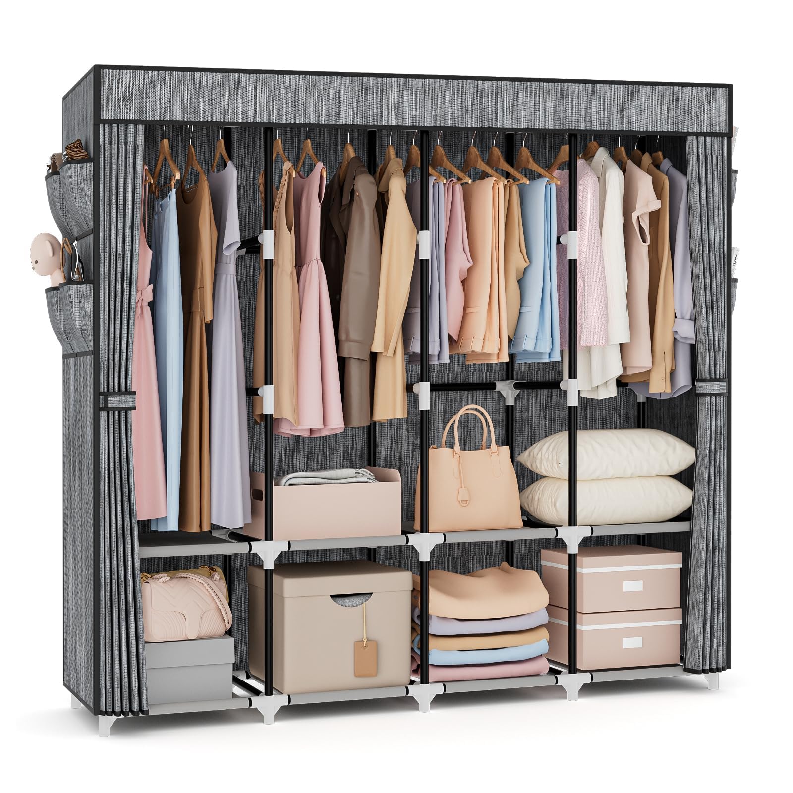 - Tissu de garde-robe de grande capacité : les dimensions du wardrobe closet sont de 66,9" L x 45,7" H et vous offrent beaucoup d'espace de rangement. Armoire portable avec 4 tringles à vêtements, 4 étagères et 4 poches latérales. La hauteur de la surface de suspension est de 125 cm, parfaite pour vos jupes, manteaux, chemises. Les étagères de rangement peuvent être utilisées pour ranger des vêtements pliés, des sacs, des chapeaux, des coussins, des couvertures et plus encore.