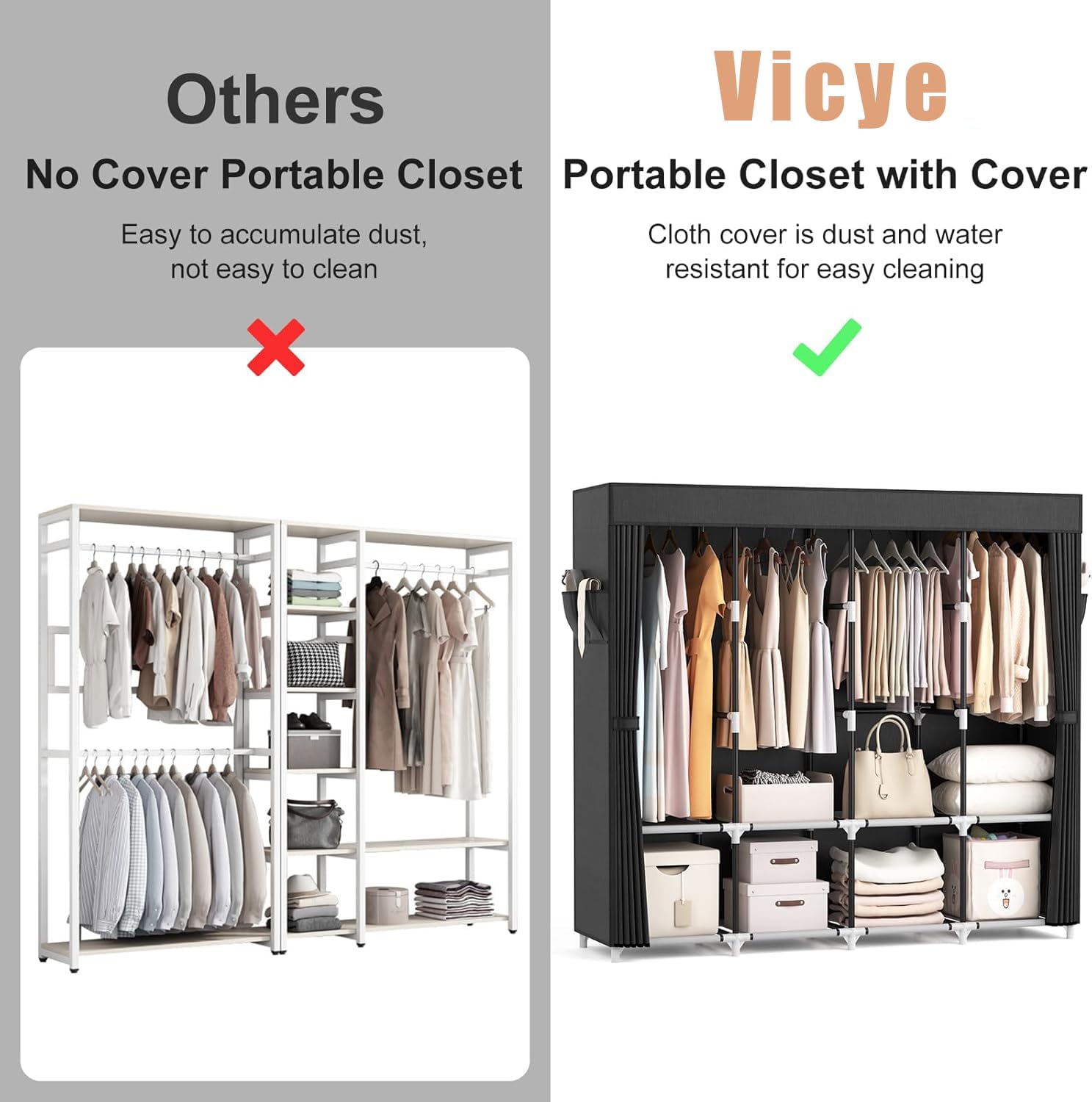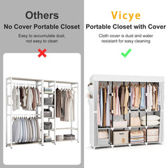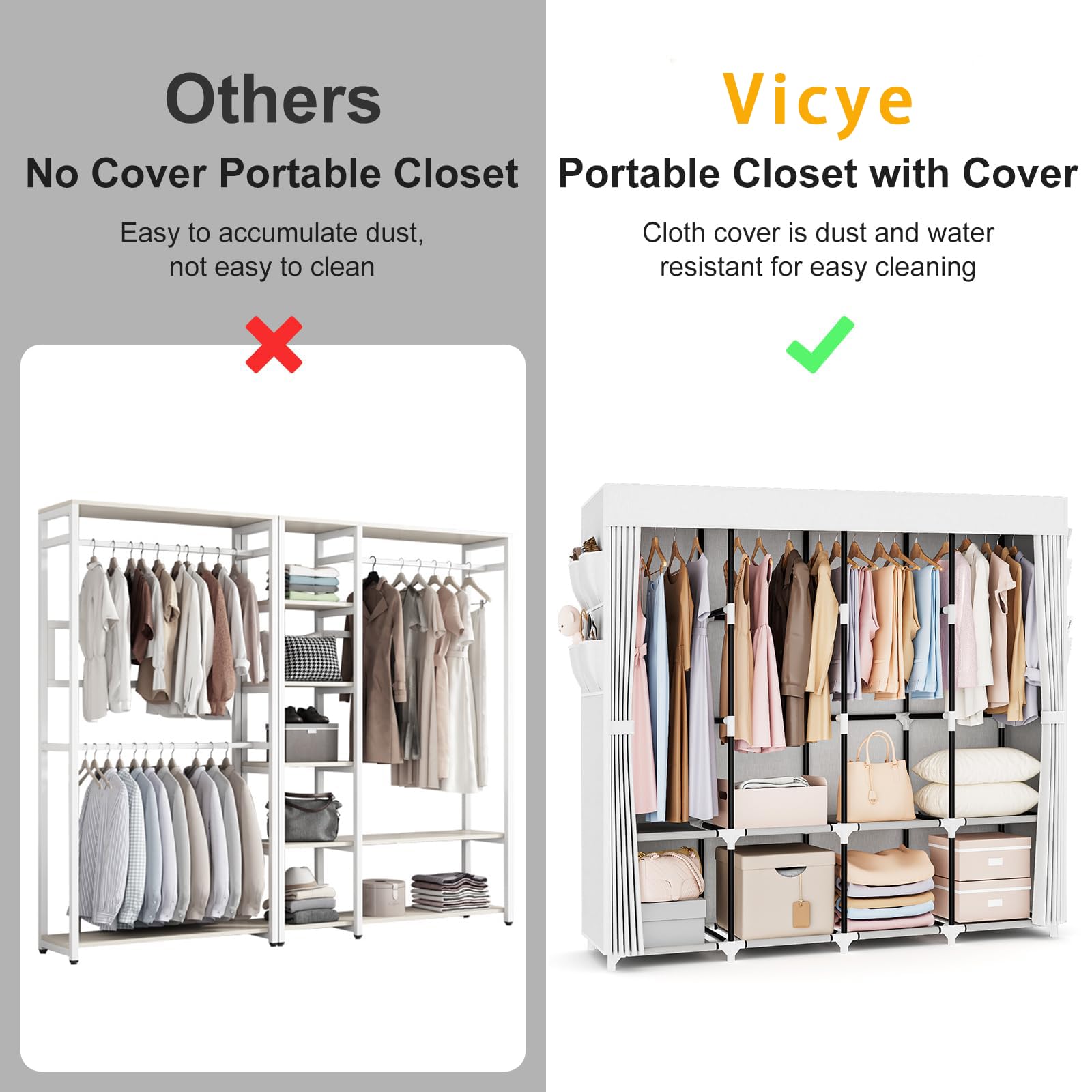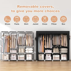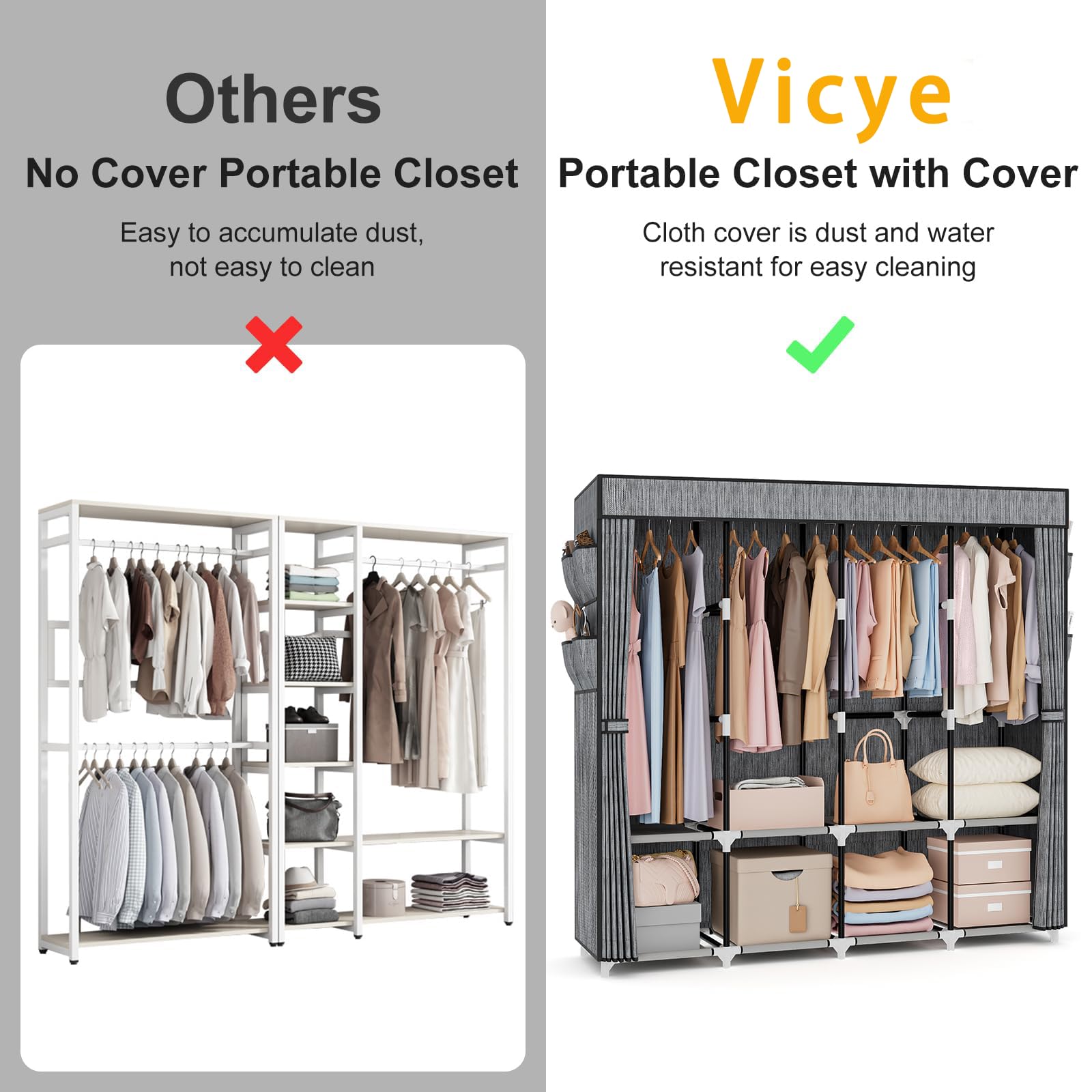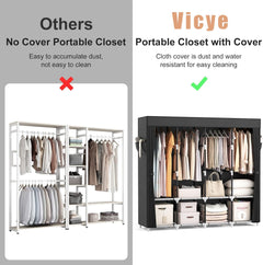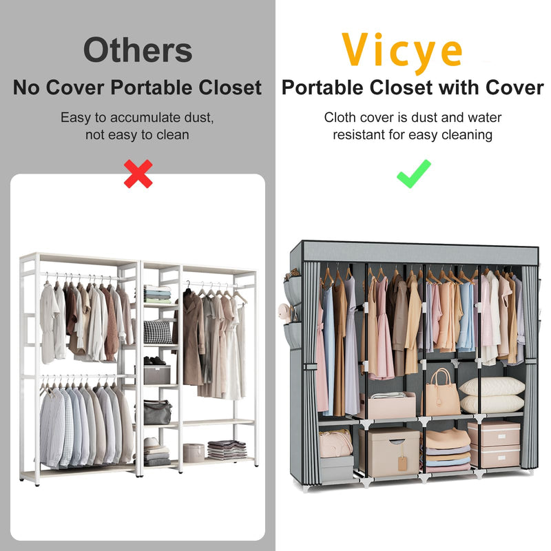 - [Armoires pliantes et en tissu avec couverture] Cette armoire en tissu stable avec couvercles offre une bonne protection pour vos vêtements. Le porte-vêtements avec housse est imperméable et respirant. Le porte-vêtements couvert est équipé d'une fermeture éclair et d'une fermeture Velcro, de sorte que vous pouvez facilement fermer ou ouvrir et fixer les housses, ce qui est très pratique. L'armoire avec portes protège vos vêtements de la poussière et les garde propres et bien rangés.