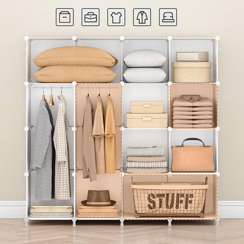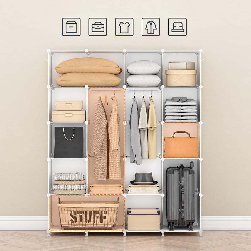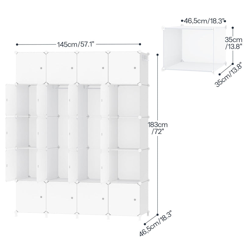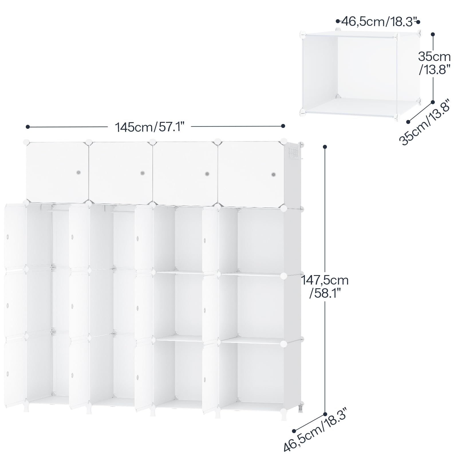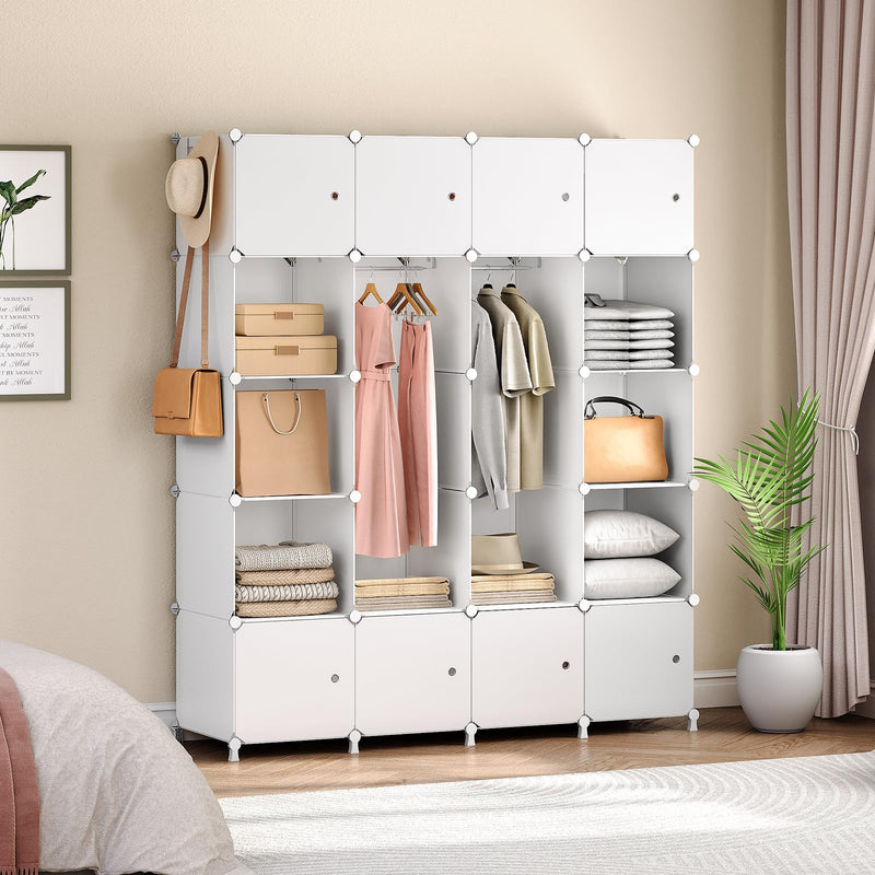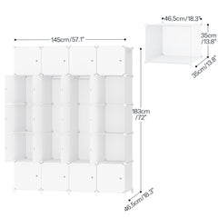 - Grande capacité : Cette armoire contient 20 compartiments, dont la dimension est de 35 x 35 x 46,5 cm, ayant une grande capacité. Avec 2 tringles et 2 patères, elle vous permet de ranger facilement des vêtements, chaussures et bien d’autres