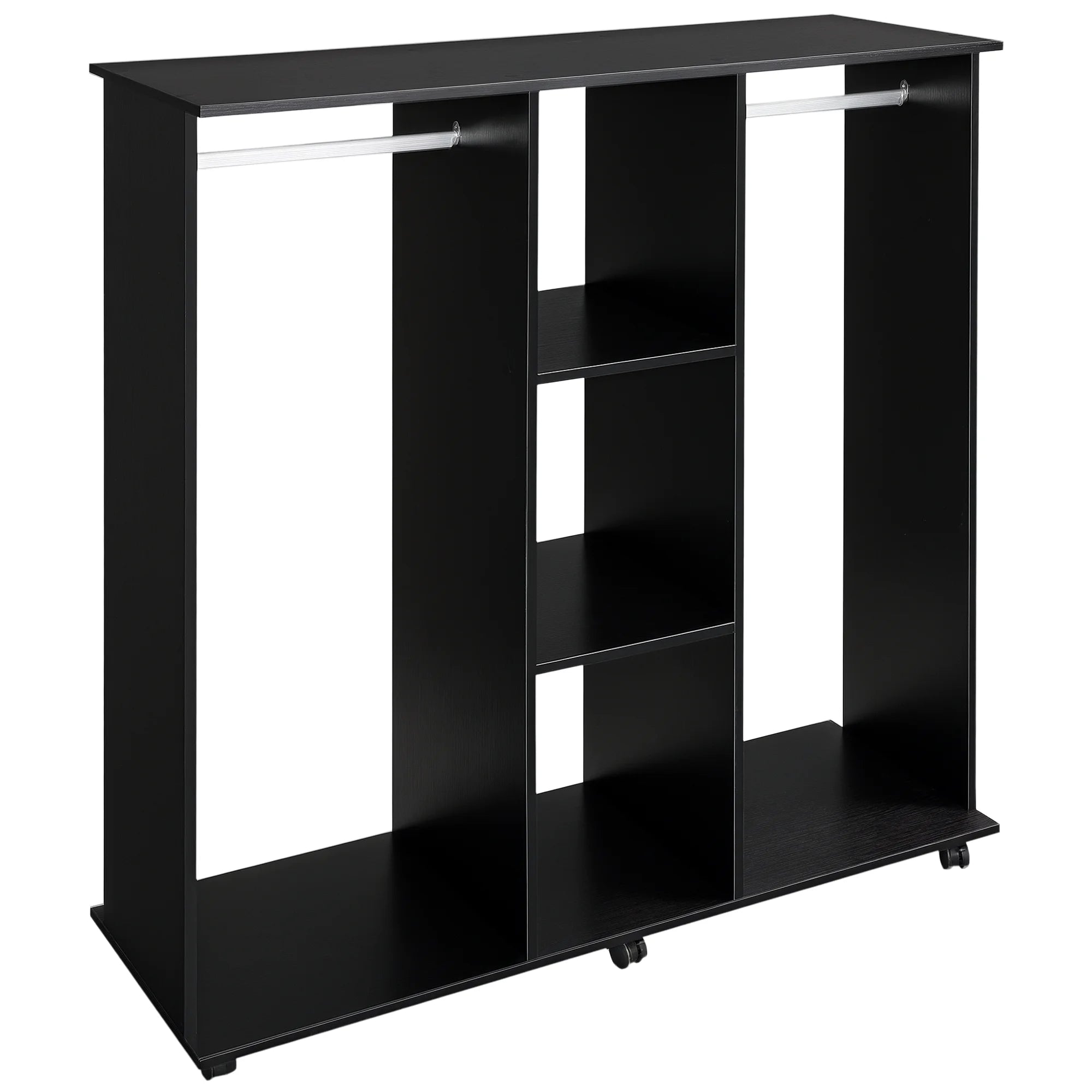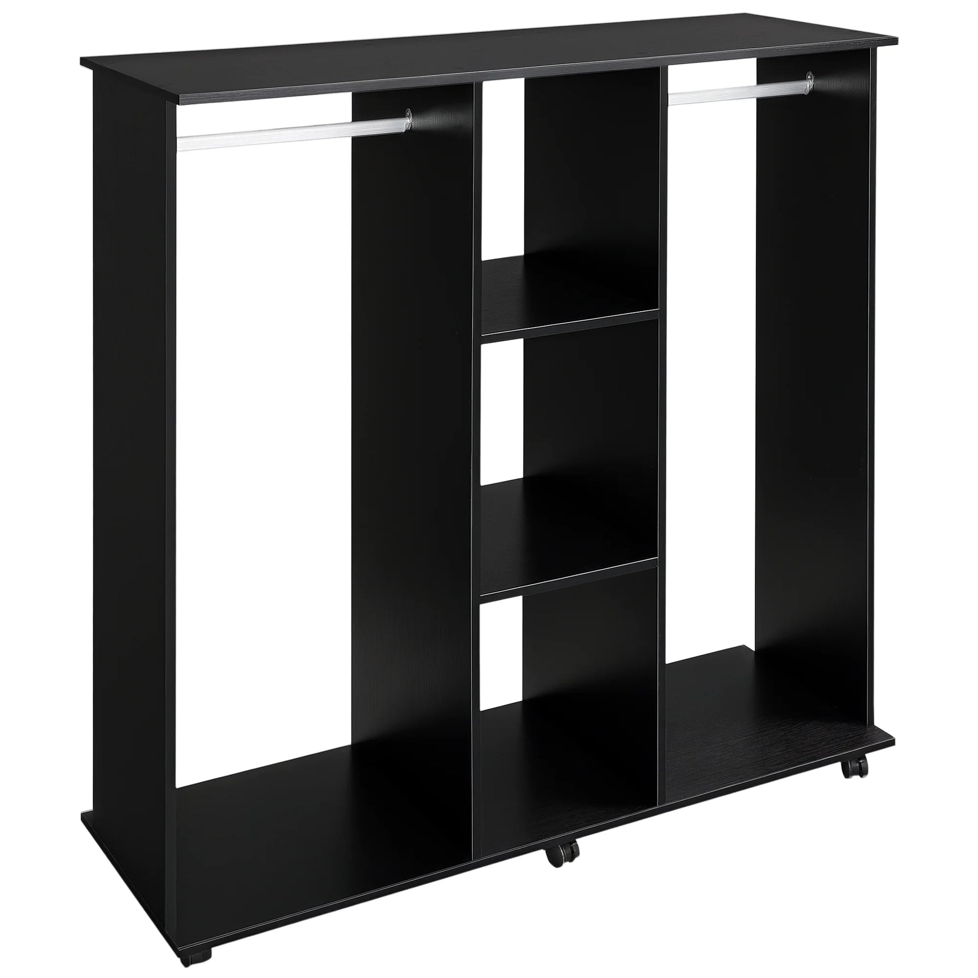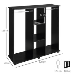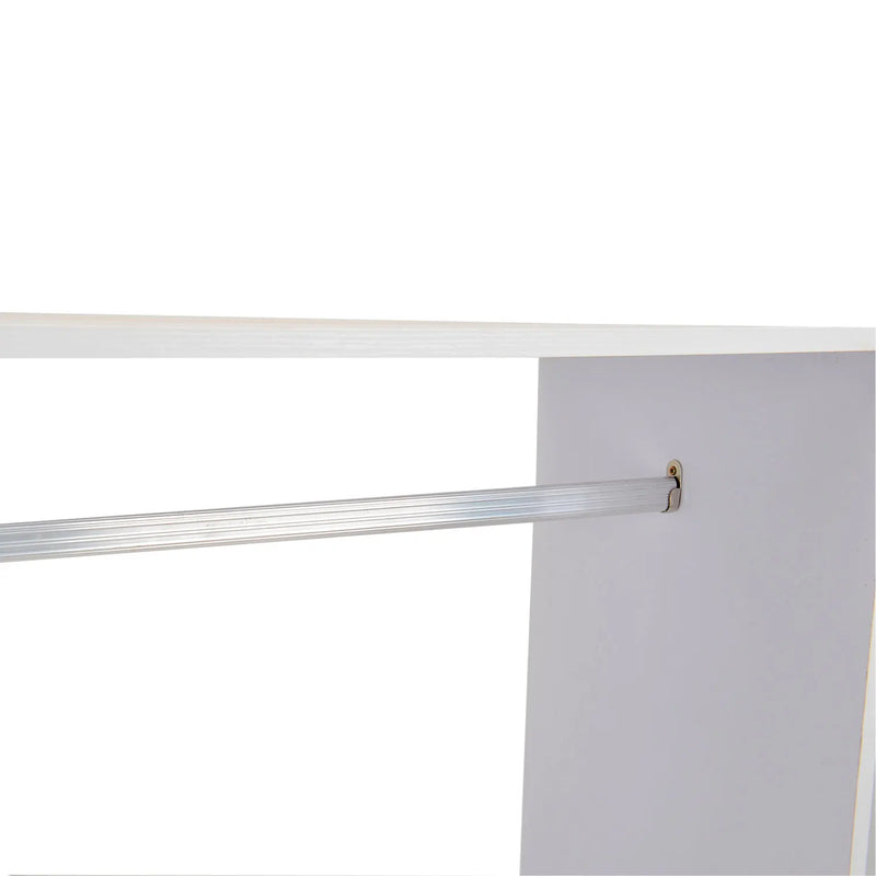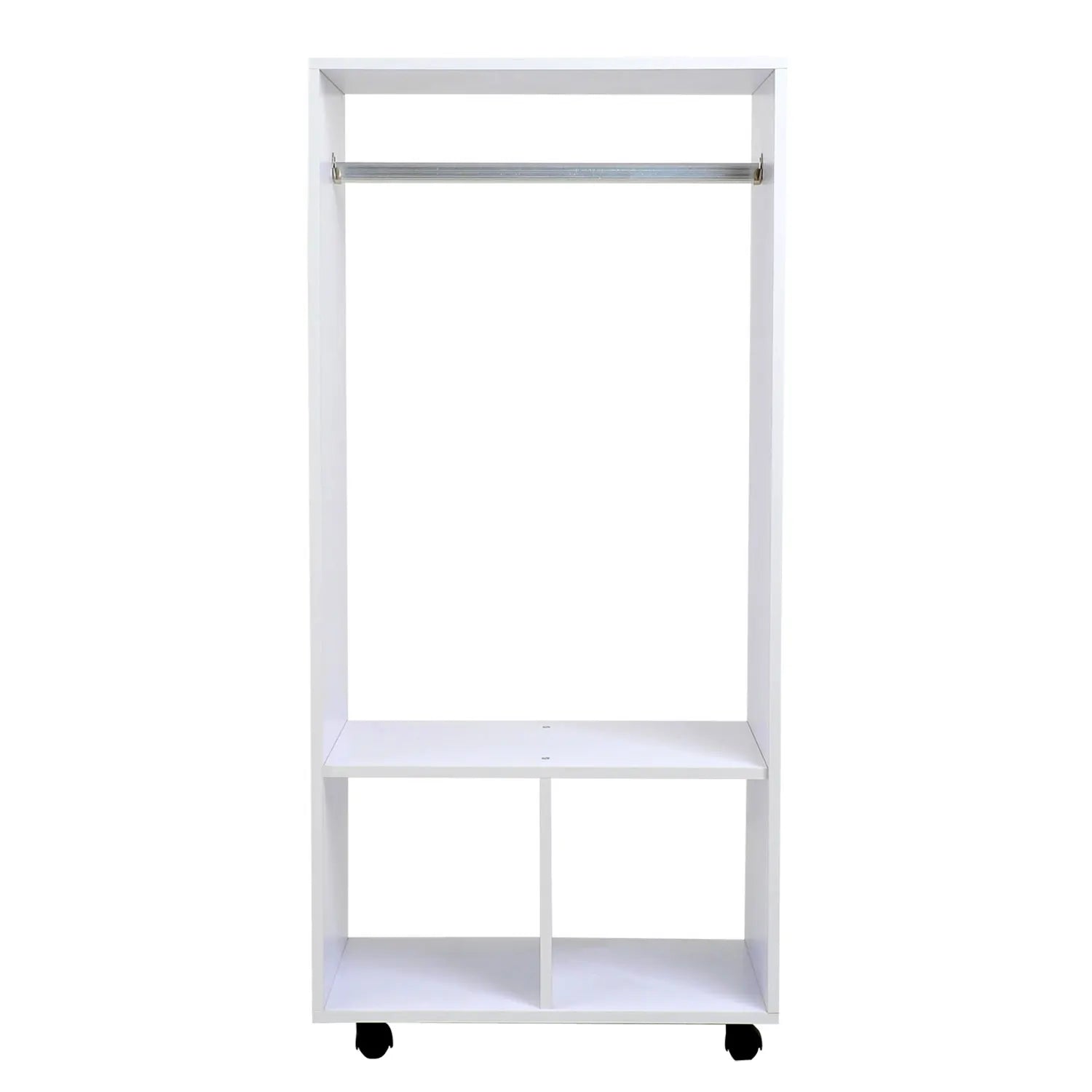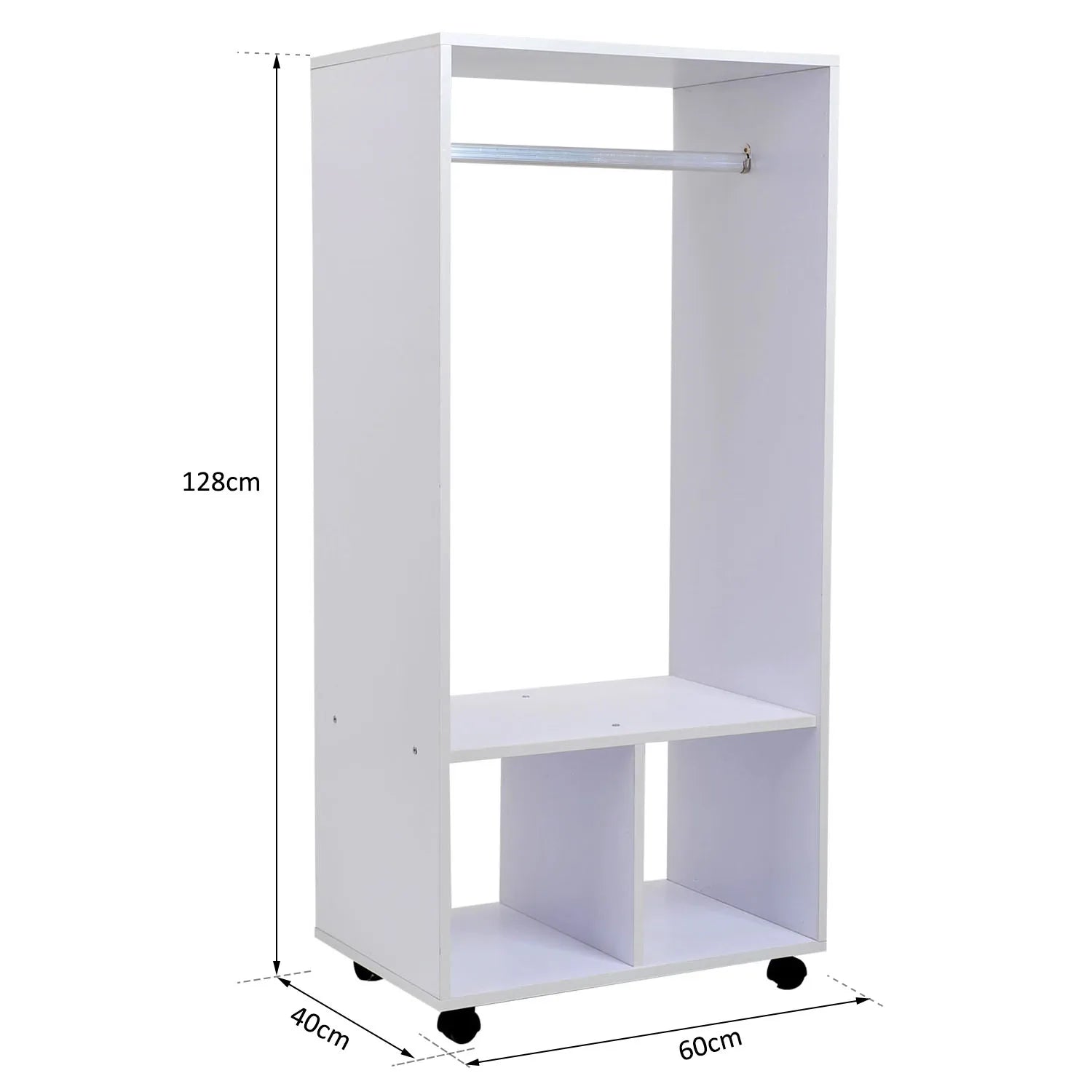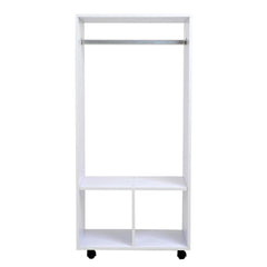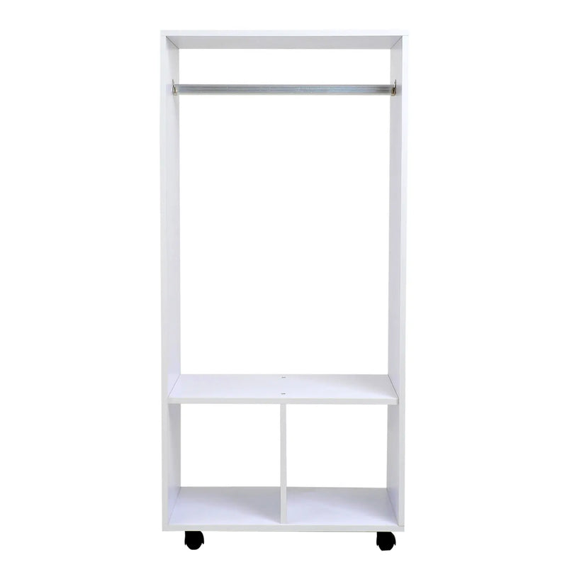 Do you lack space to store your clothes?We have the solution!This wardrobe is very elegant and will fit perfectly into your bedroom or dressing room.It has two compartments and three shelves, which provide you with great storage capacity.Thanks to its wheels, you can easily move it wherever you need; 2 of them incorporate brakes, so you can fix it for greater stability.This cabinet has an open design to keep all your things within reach, it is very practical and functional. add storage space in your home!
