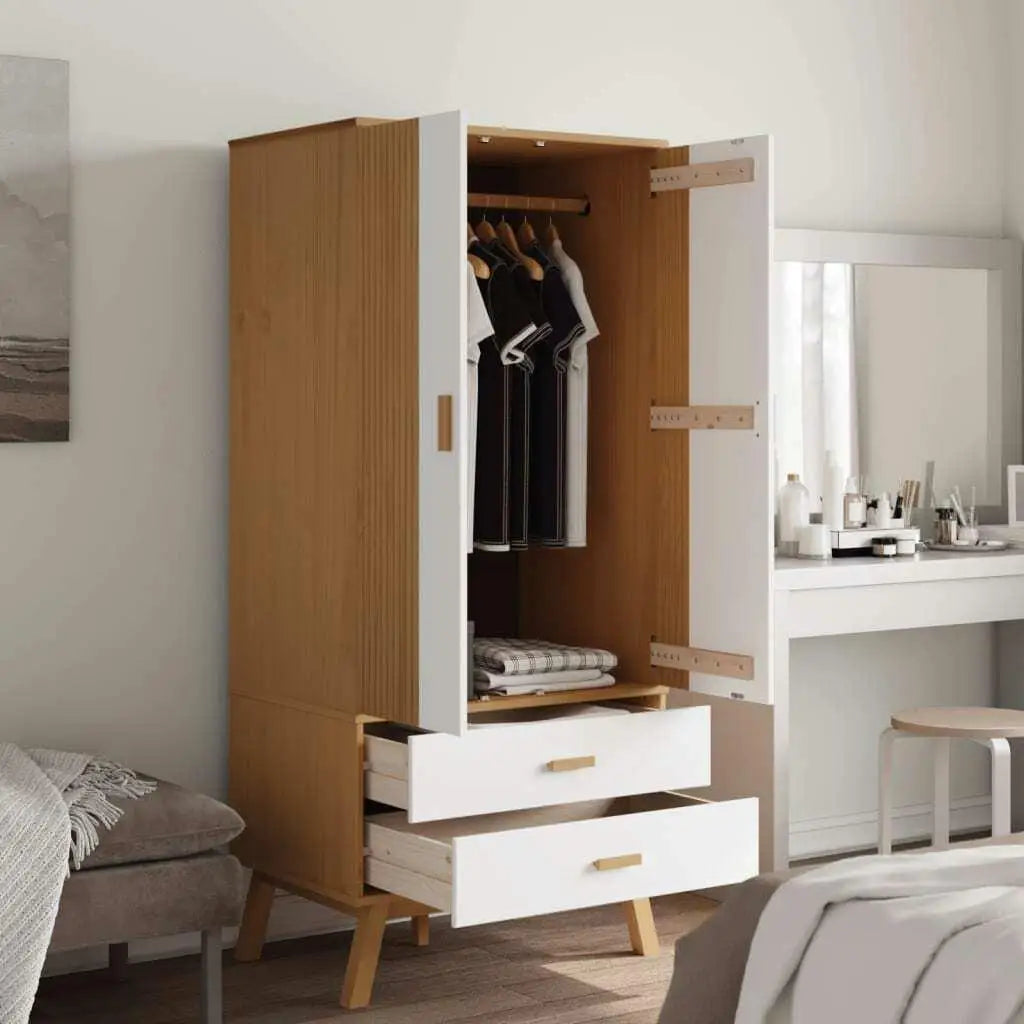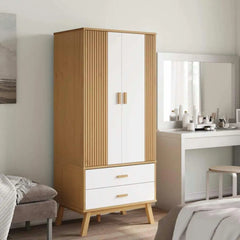 This classic wooden wardrobe, with a Scandinavian design, offers a large storage space to keep your clothes and accessories tidy. Solid pine wood: solid pine wood is a magnificent natural material. Pine wood has a straight grain and nodes give the material its characteristic and rustic appearance. Made of solid pine wood, the storage cabinet is durable and robust. Grand storage space: this cabinet includes 2 drawers and 1 large compartment with doors, offering you enough space for your longer outfits and other folded clothes or accessories, such as sweaters, jeans, hats, handbags, etc. And the closure of the cabinet while adding additional beauty. Wooden figs: wooden feet give the closet organizer a natural and pleasant appearance while ensuring its stability. It can be integrated into any inner setting. Please note: to prevent it from rocking, this product must be used with the wall fixing device provided.