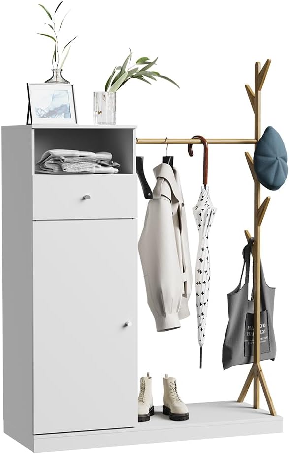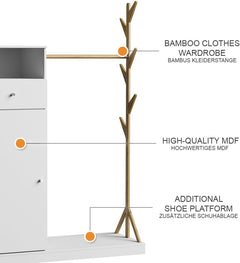 - Le portemanteau est polyvalent et peut être utilisé dans la chambre à coucher, l'entrée ou le salon. Une armoire polyvalente pratique pour le rangement des vêtements et des accessoires.