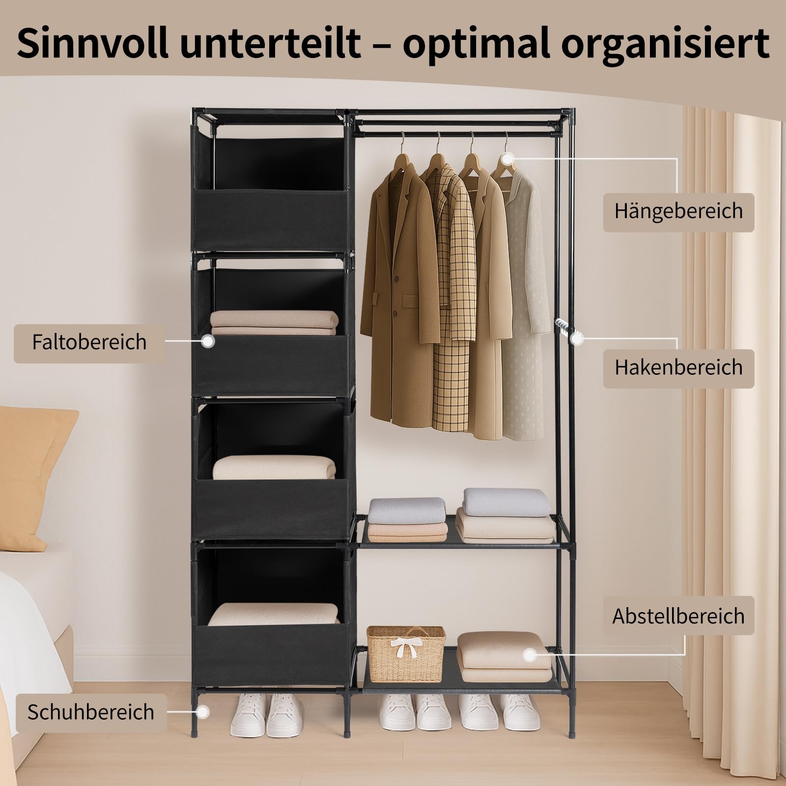 - 【Conception du rideau】Le rideau peut être ouvert ou fermé à tout moment, dissimulant les vêtements à l'intérieur, évitant l'exposition du désordre et garantissant un espace privé