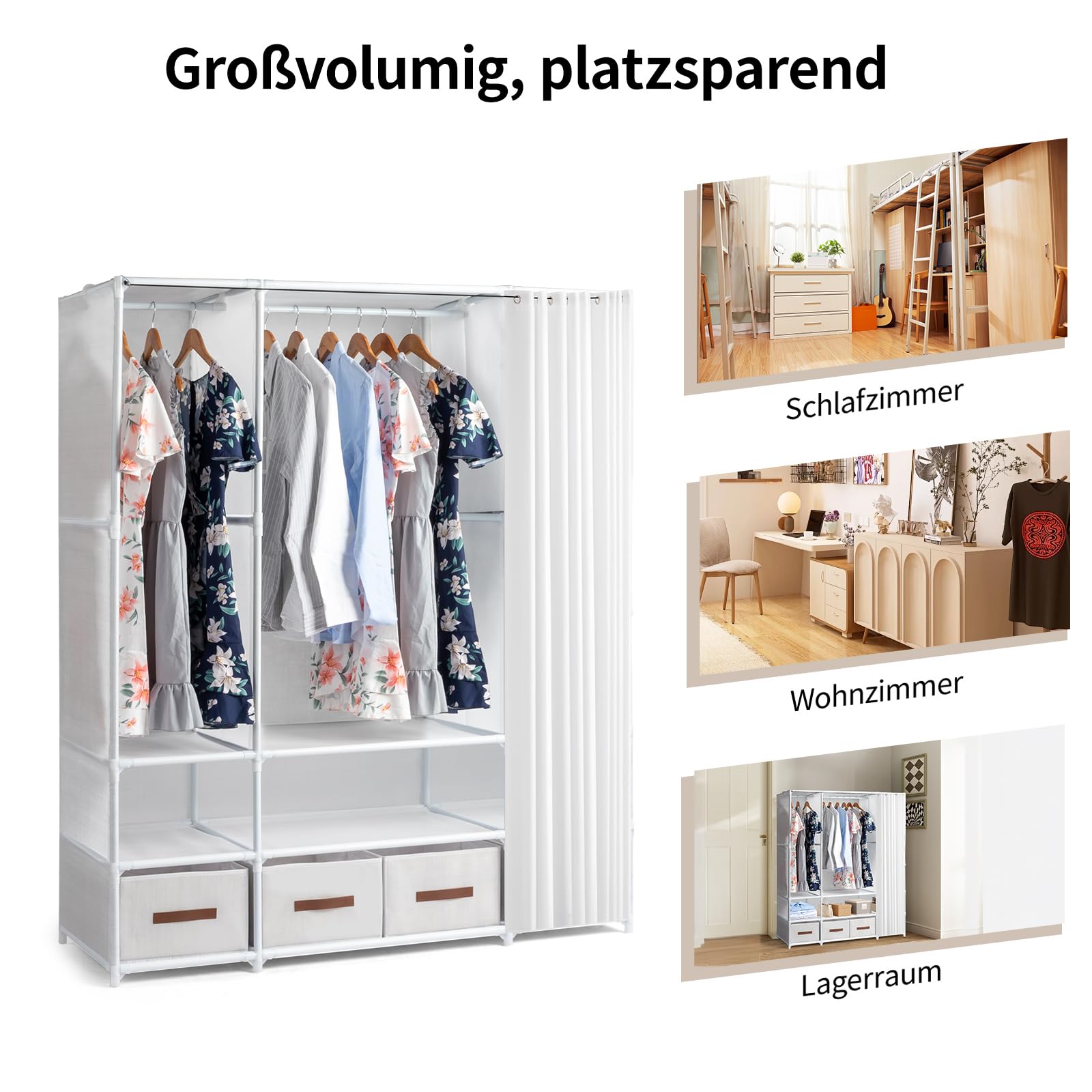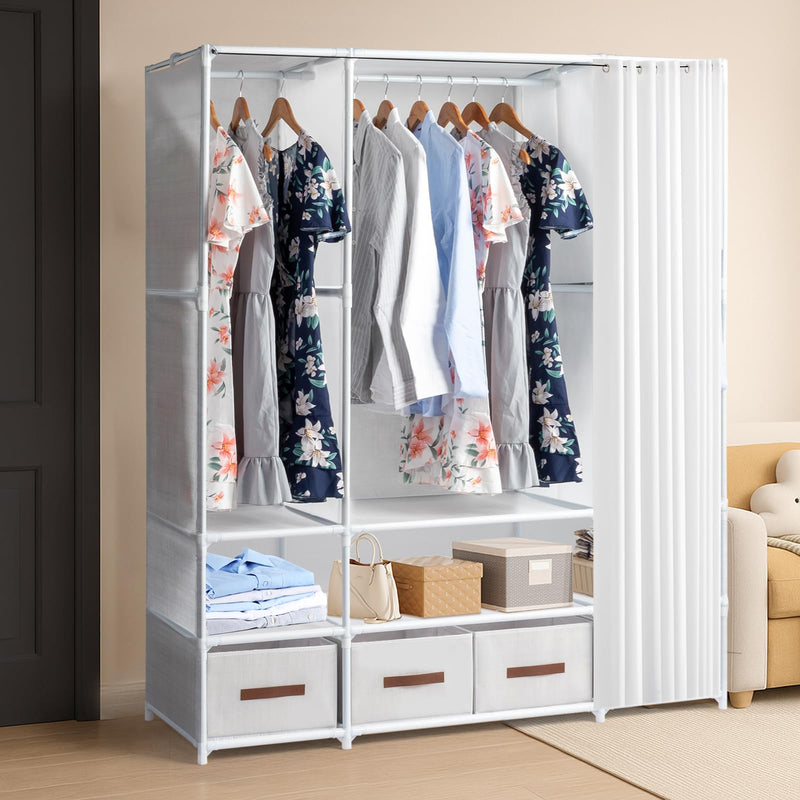 Armoire penderie de rangement avec rideau