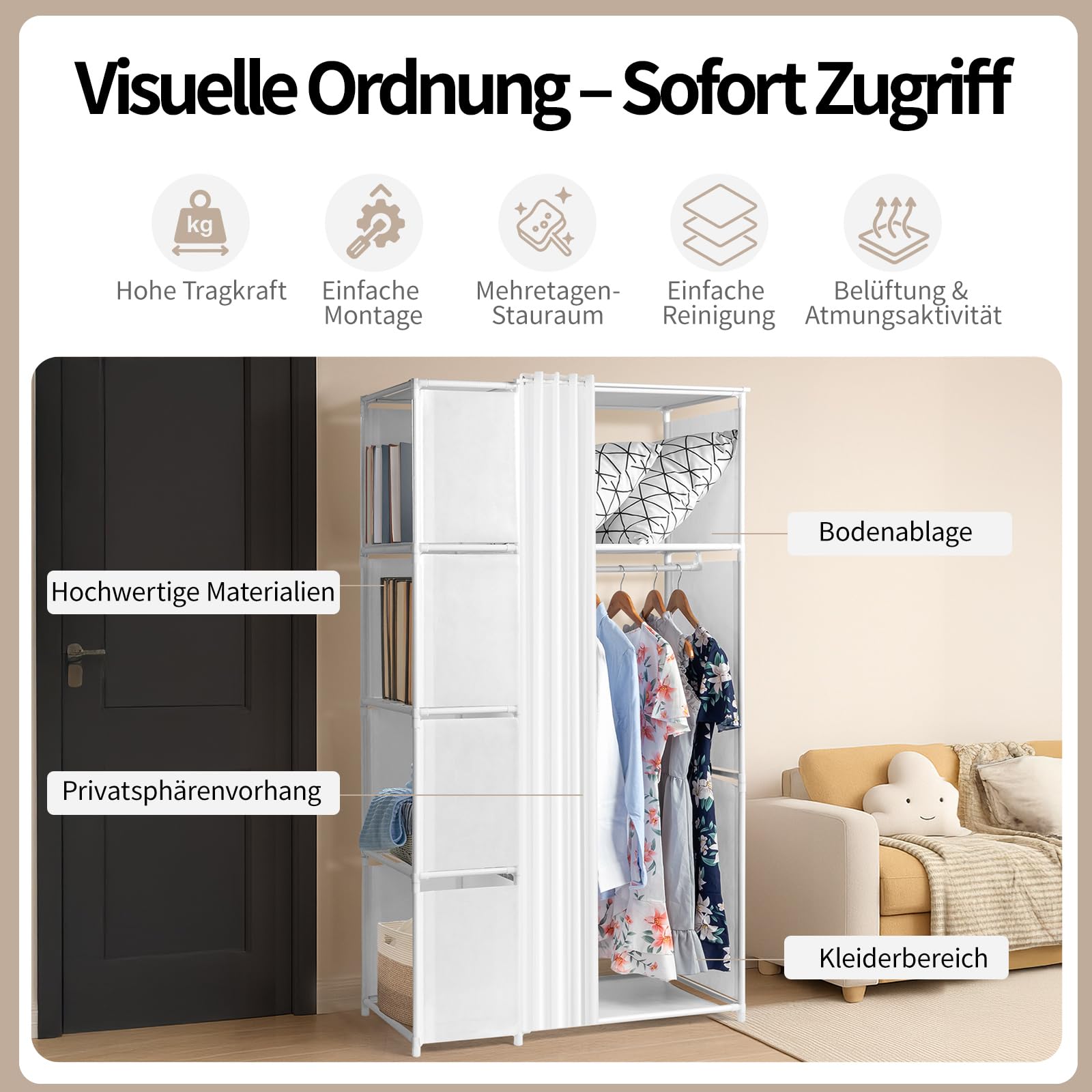 - 【PRATIQUE ET FONCTIONNEL】 Ce placard de chambre respirant et peu encombrant est parfait pour organiser vos objets dans une chambre, un salon, un dressing ou tout autre petit espace