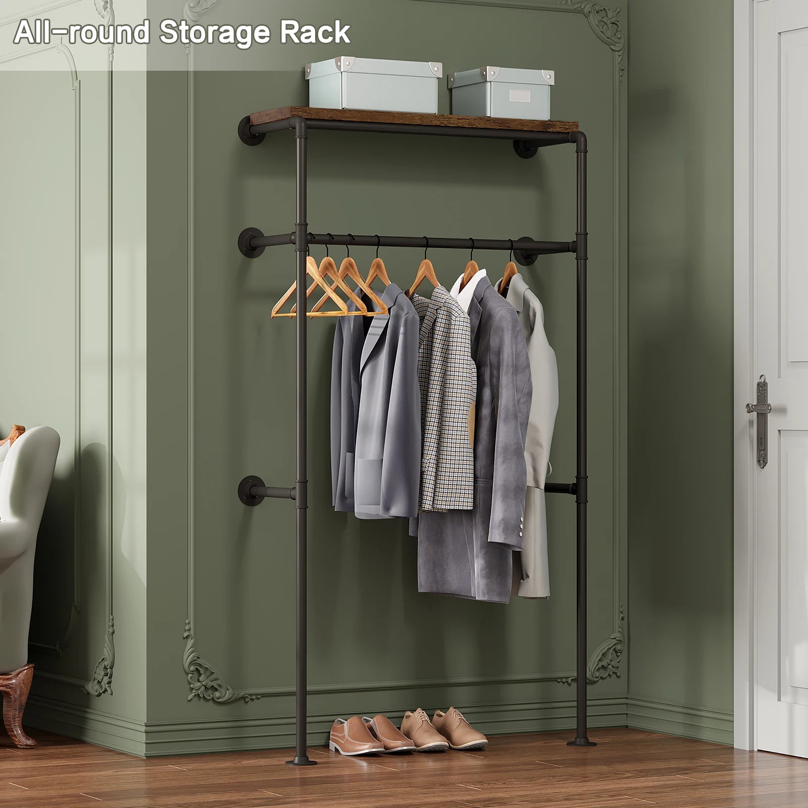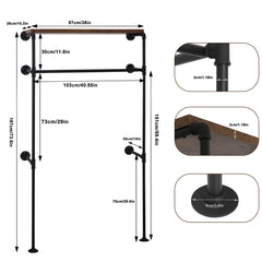 ASSEMBLY & SIZE: Illustrated instructions are included. Drilling on the wall (suitable for all wall types) is required for installation, if necessary you can also drill on the floor. Size: 103x35x187cm, clothes rail height: 151cm, load capacity: 100kg