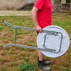 - ✅ TRÈS STABLE : Le mange debout possède des pieds diamètre 60cm en acier thermolaqué et un plateau bien épais de 40mm d'épaisseur. Supporte jusqu'à 100kg. Installez le sans difficulté dans un jardin ou sur une terrasse.