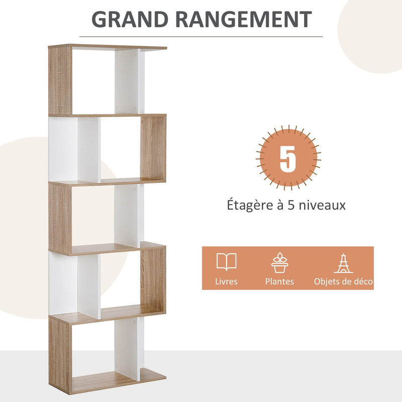 - NOMBREUX RANGEMENTS : 5 étagères divisées en 2 parties