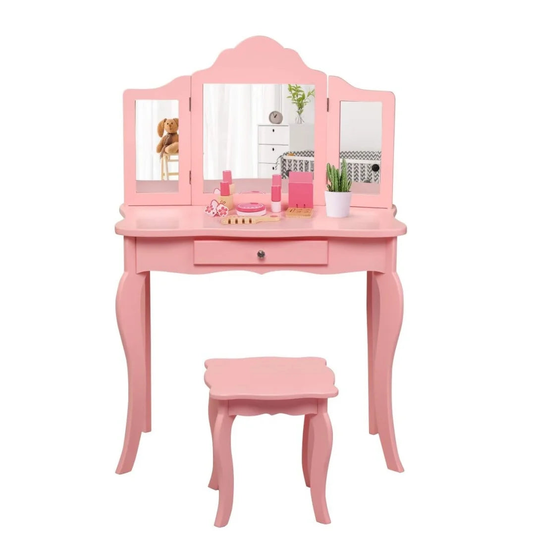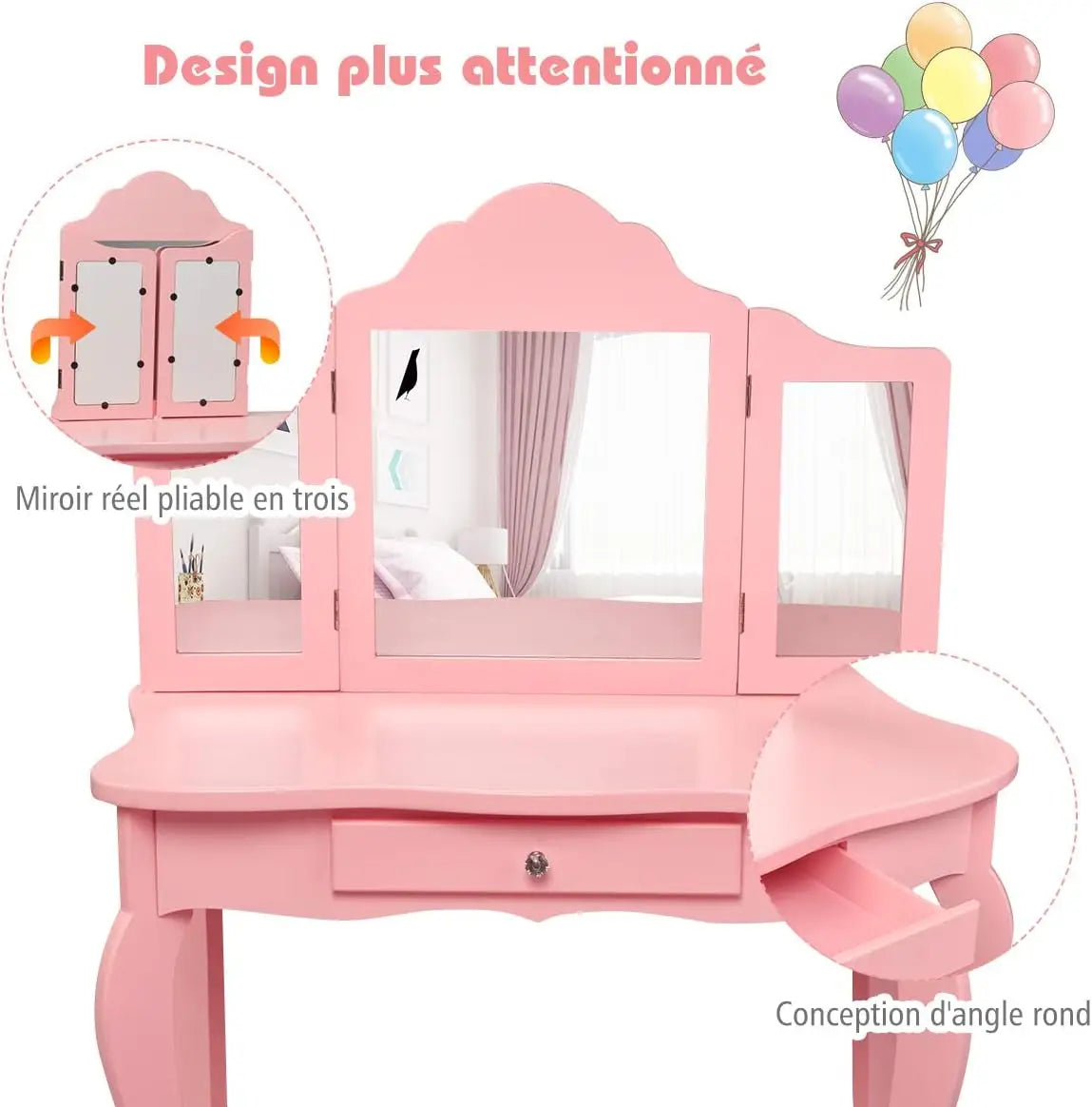 【Double use of toilet table: 】 The top of the mirror can be removed and the table can be used by your children to study or have fun. The whole dressing table is pink, perfectly suitable for your child's bedroom or games.