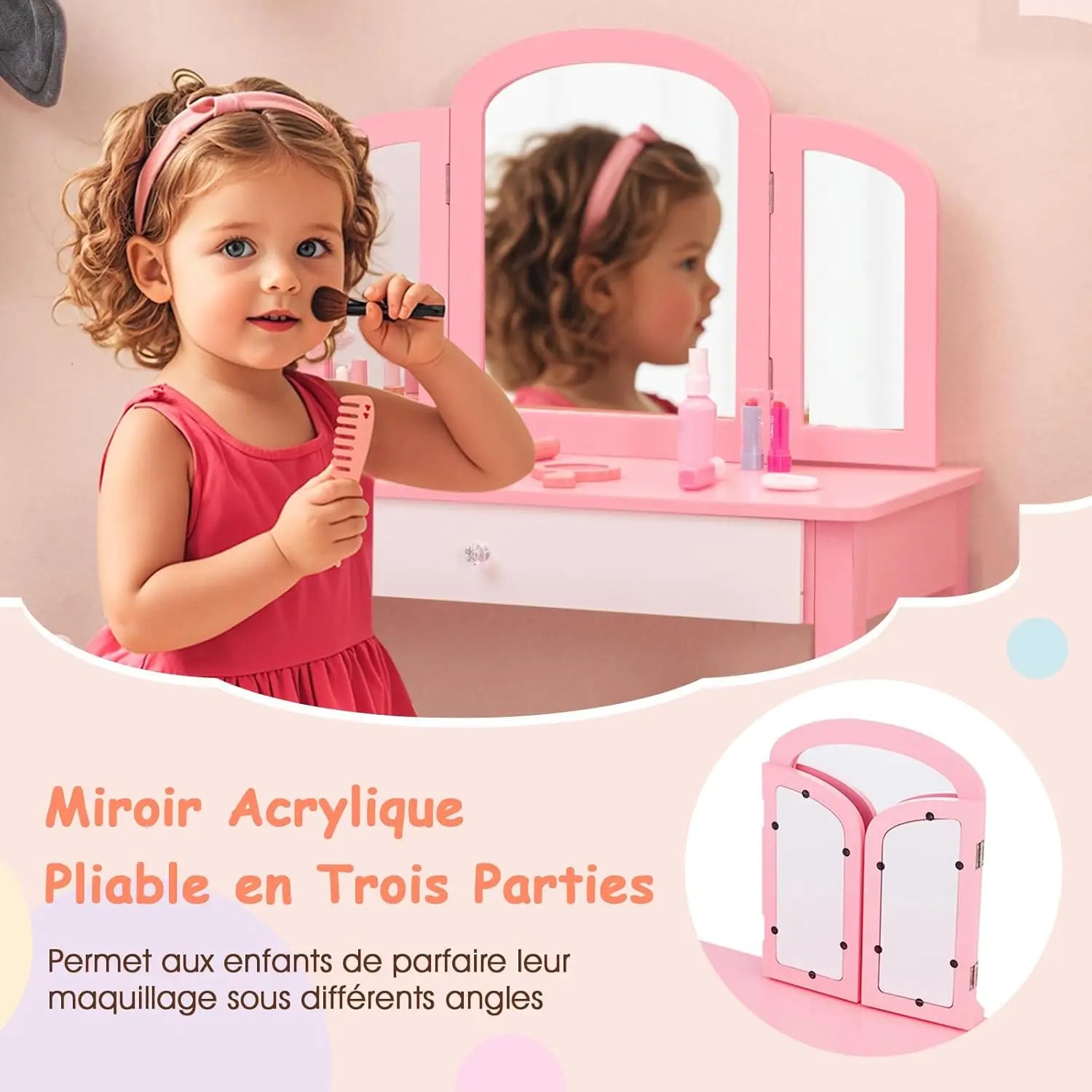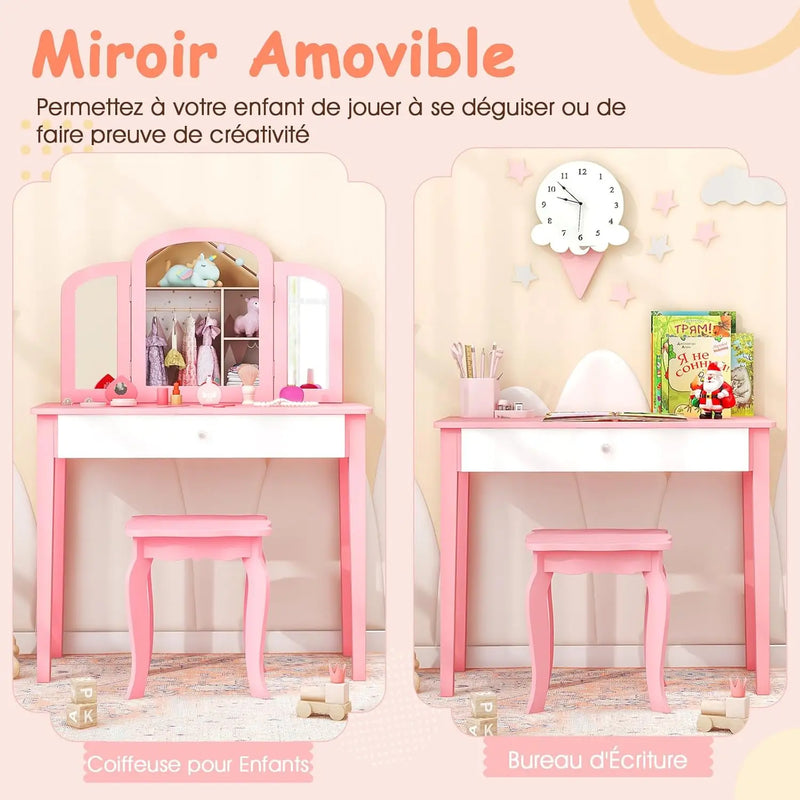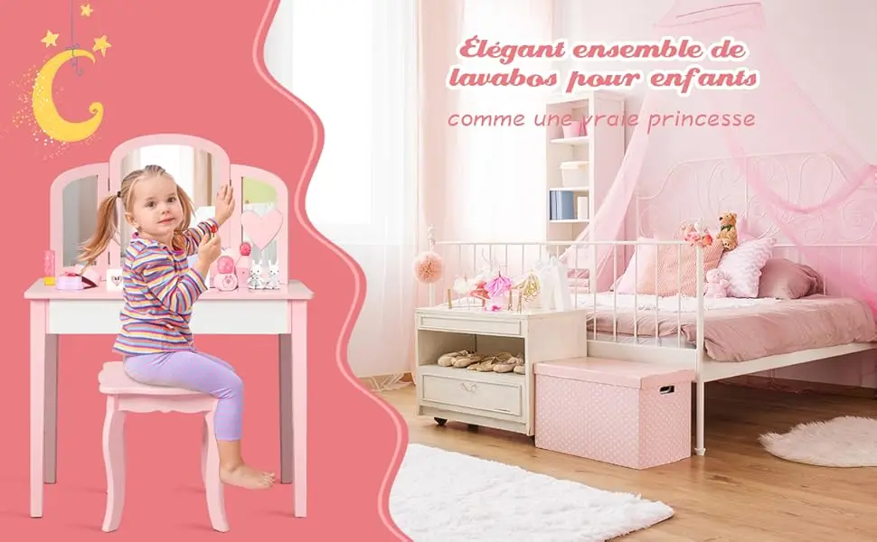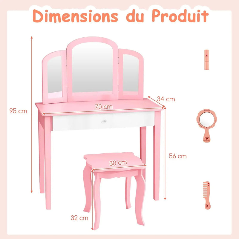 【Perfect furniture 】 The dressing table child girl with chair will be a beautiful addition to the bedroom of your little princess, adding a touch of elegance. Your girl is sure to be attracted by the elegant look and design of the dressing table.