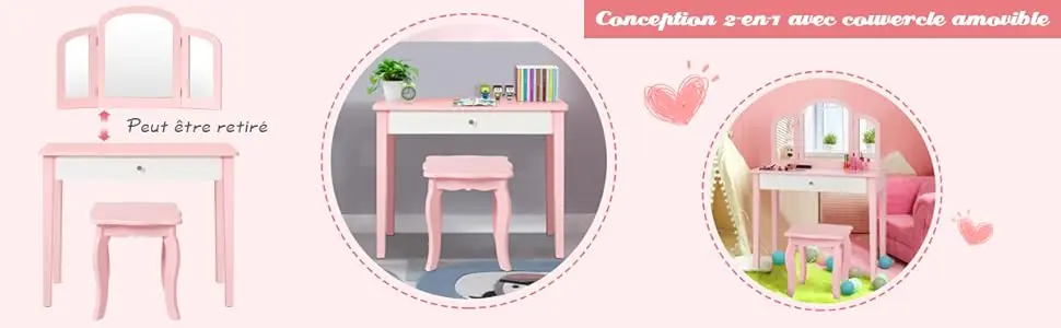 【Versatile design 】 The mirror of this dressing table can be removed, so your child can use the table as a desk to write or read. This 2 1 design is plus convenient and saves your house space.