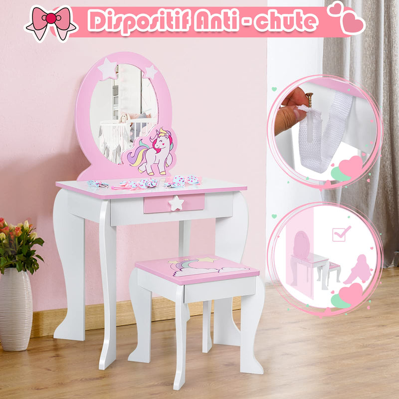 Coiffeuse enfant pour fille avec miroir Amovible