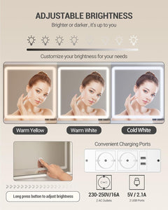 - 【Adjustable Lighting】Three colors of LED lights can be changed at will, whether it is daily natural light, warm light or professional cold light, which will allow you to show yourself the most perfect in front of the mirror. The mirror is clear and can easily capture every detail of your face, making your makeup more delicate and perfect.