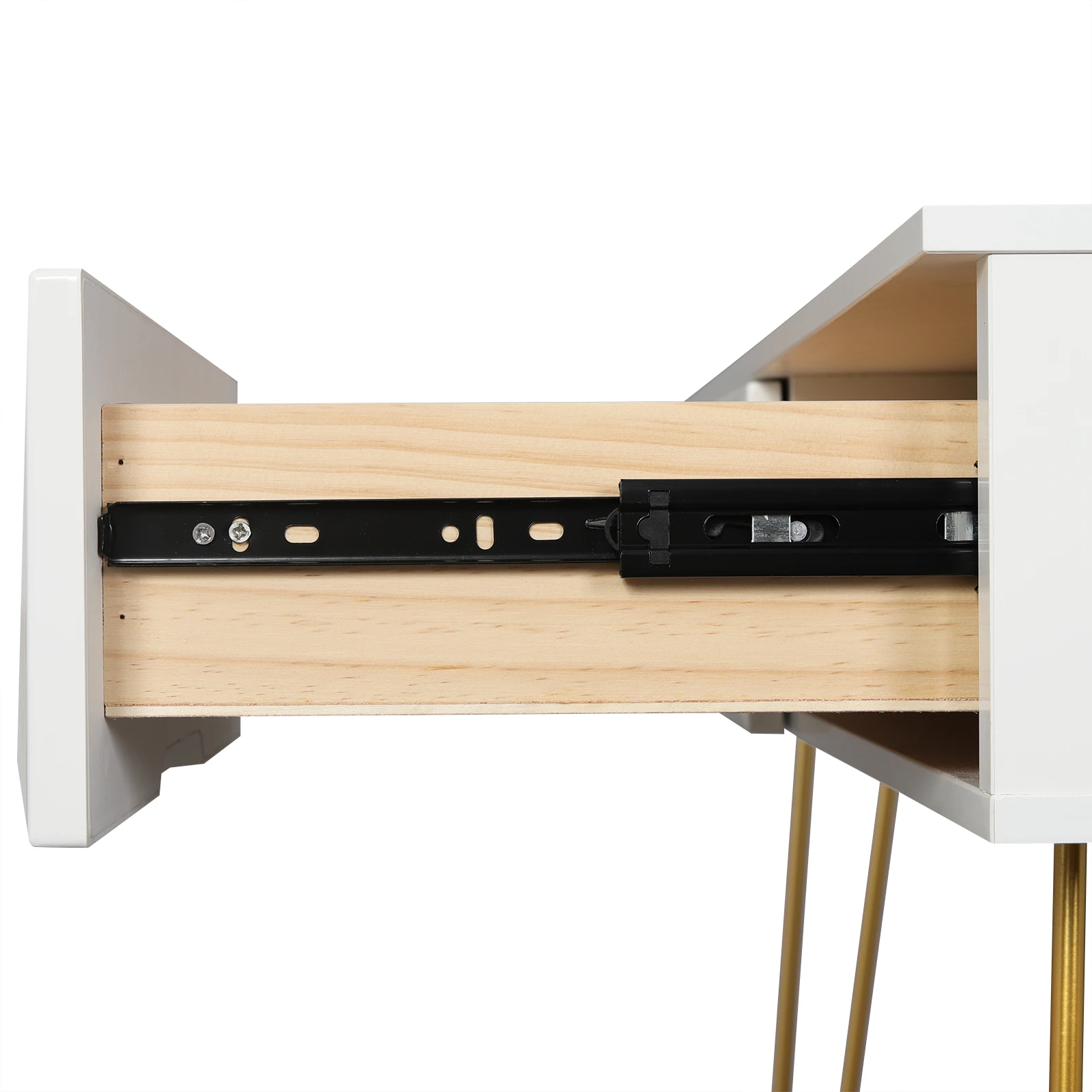 Make-up table material: E1 MDF + solid wood drawers+ metal legs