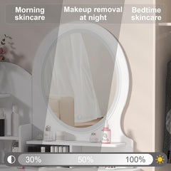 Grand miroir et 3 options de lumière de couleur : la table de maquillage est équipée d'un grand miroir, qui peut refléter votre apparence plus clairement et de manière réaliste sous tous les angles. La luminosité de la bande lumineuse LED avec 3 modes peut être ajustée. Répond à vos besoins pour différents environnements et looks de maquillage, vous permettant de profiter d'une expérience de maquillage comme une star.