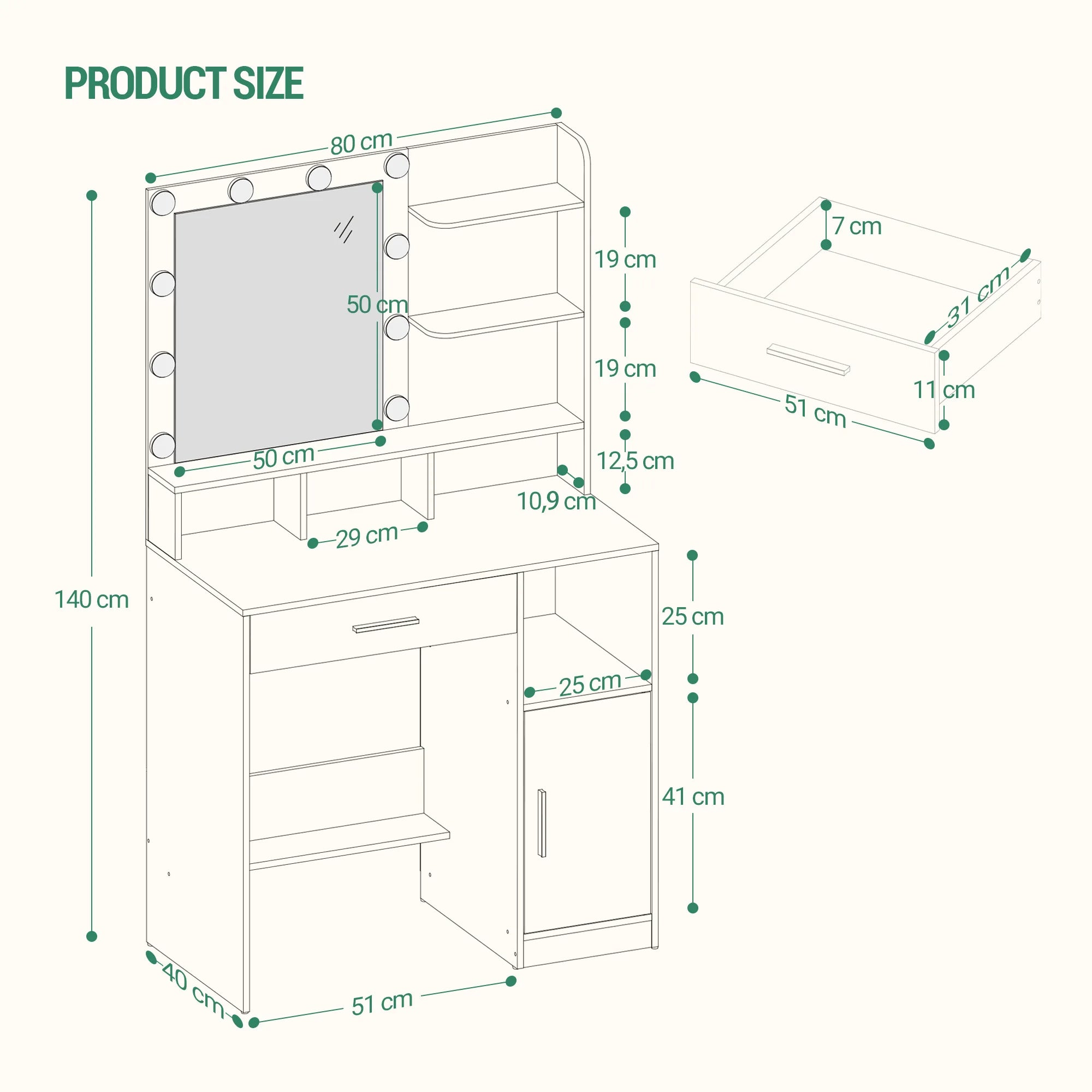 Selected materials: our dressing table is made of chipboard, it is very durable, stable and has a smooth surface that is easy to clean.