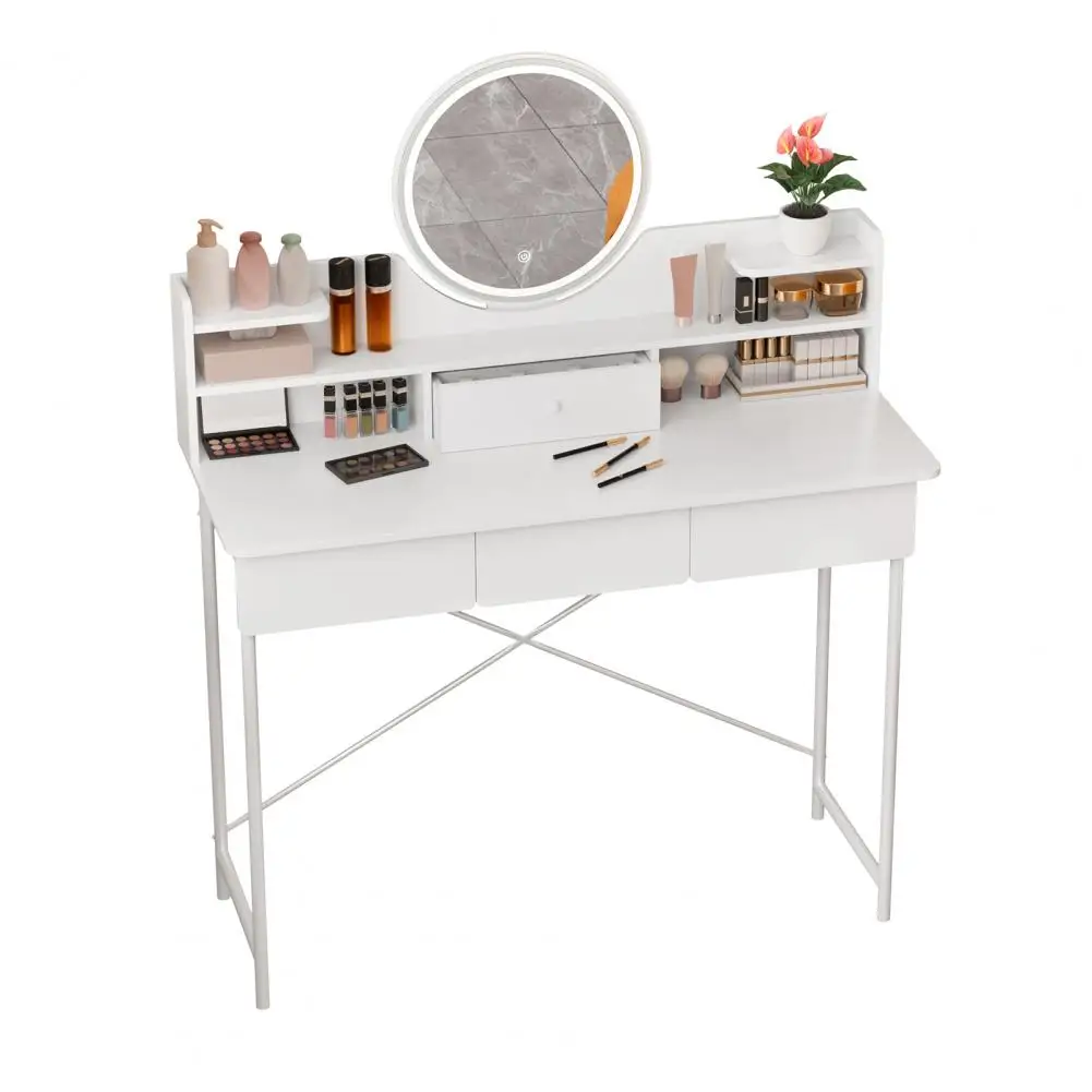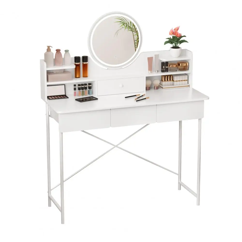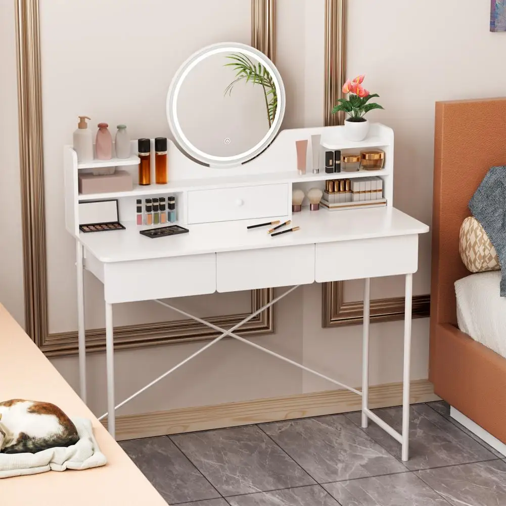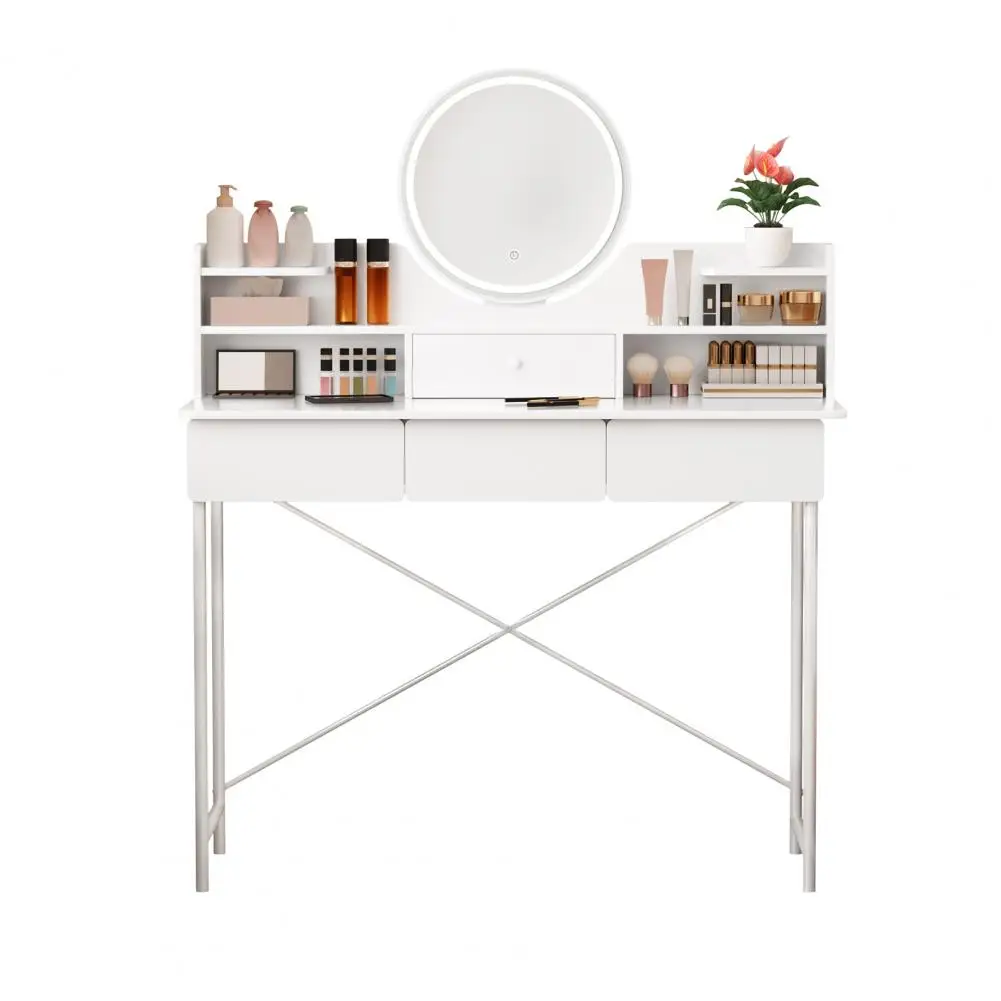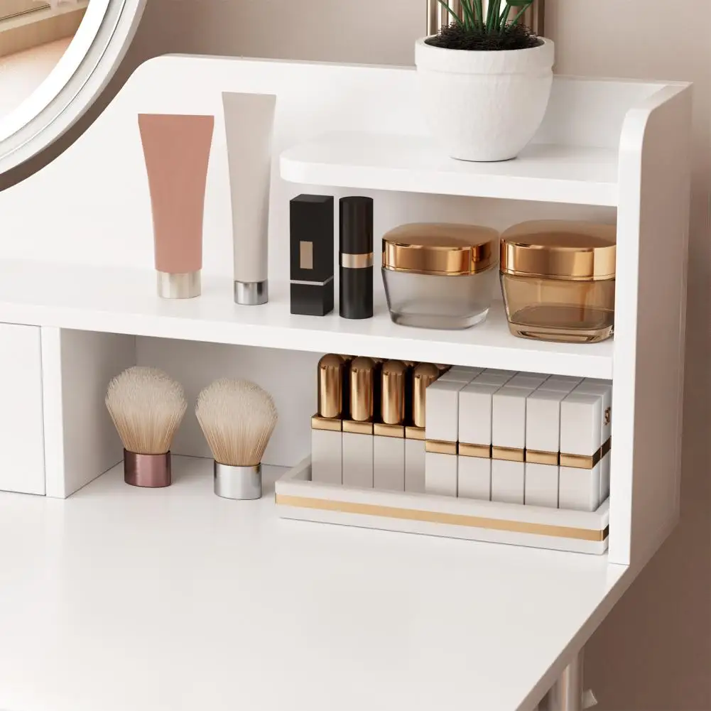 Durable Structure: Sturdy construction means this vanity with lights and drawers is a top choice for your beauty station. With its minimalist and modern style, this simple vanity table displays an unmistakable aura that will perfectly decorate your room and add glamor.