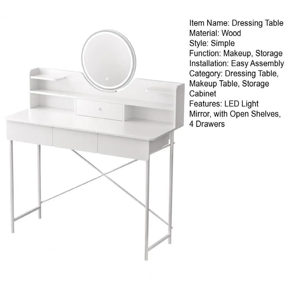 Features: LED Light Mirror, with Open Shelves, 4 Drawers
