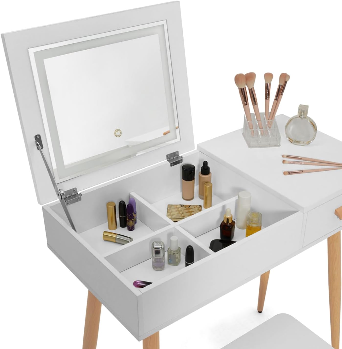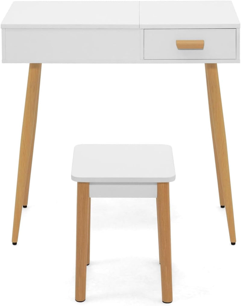 - Rangez tout votre maquillage et vos bijoux dans cette magnifique coiffeuse en bois design scandinave