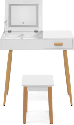 Coiffeuse moderne avec miroir rabattable Led scandinave