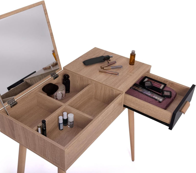 - Rangez tout votre maquillage et vos bijoux dans cette magnifique coiffeuse en bois design scandinave