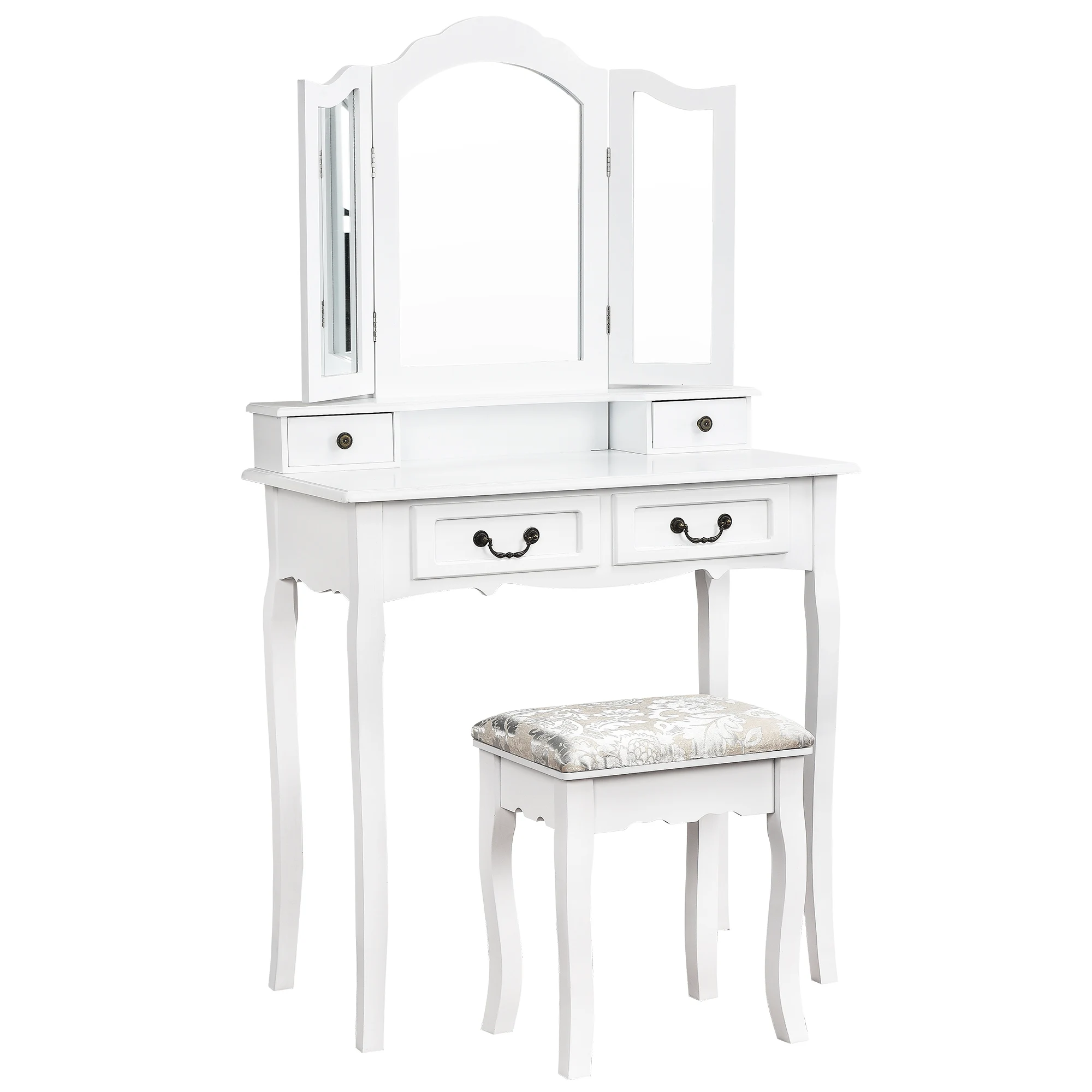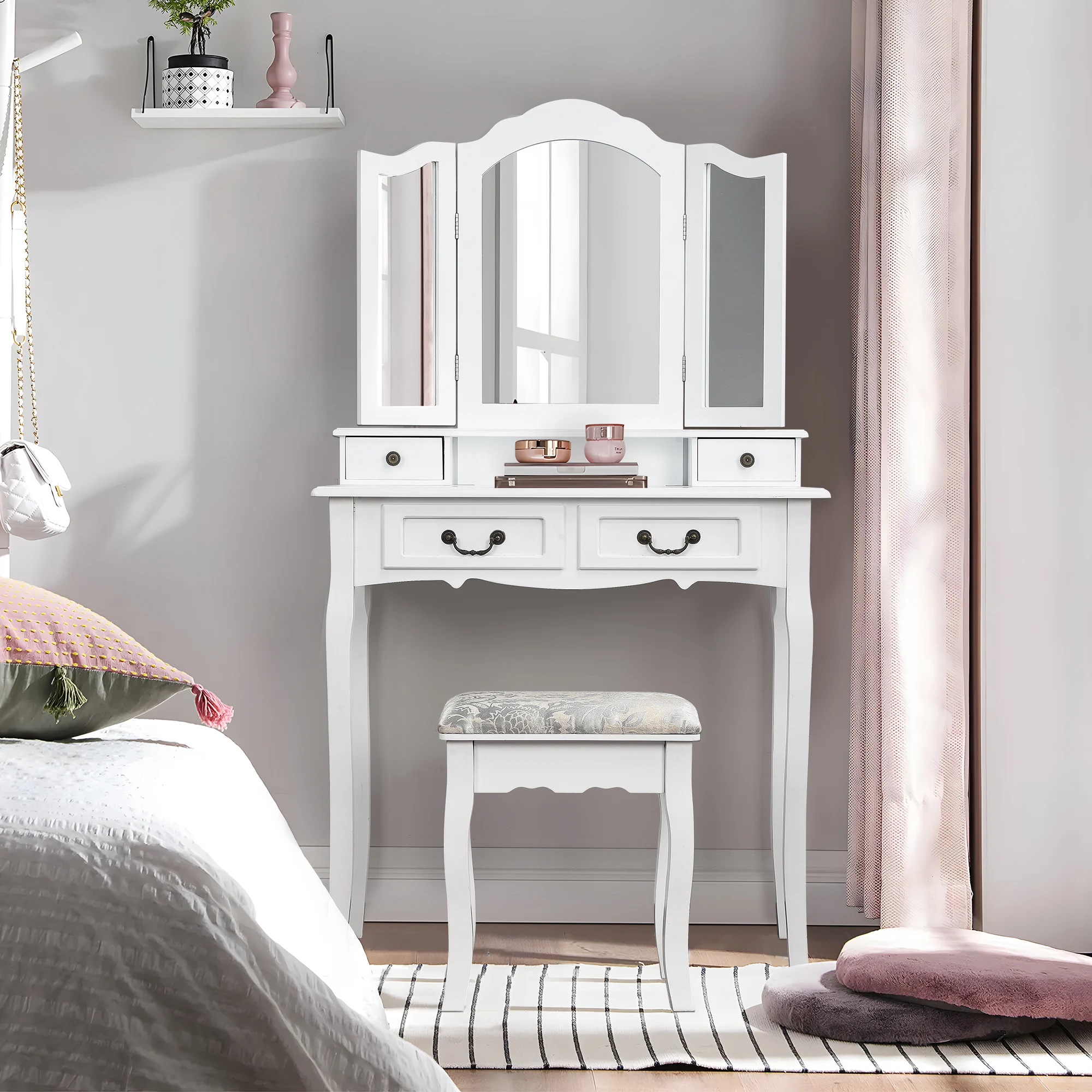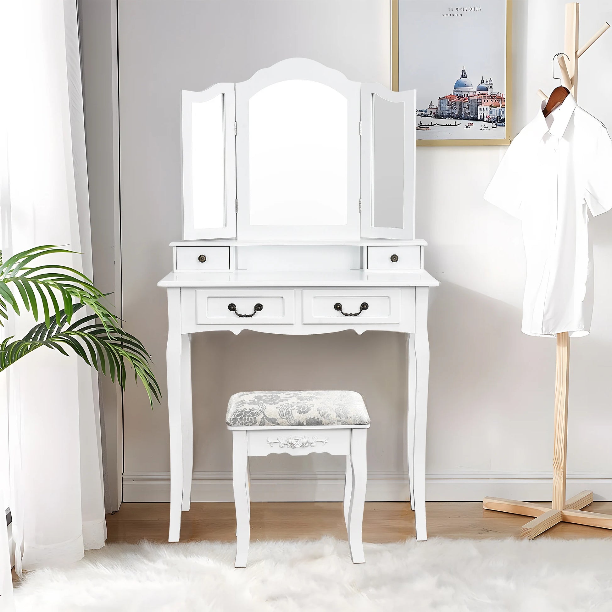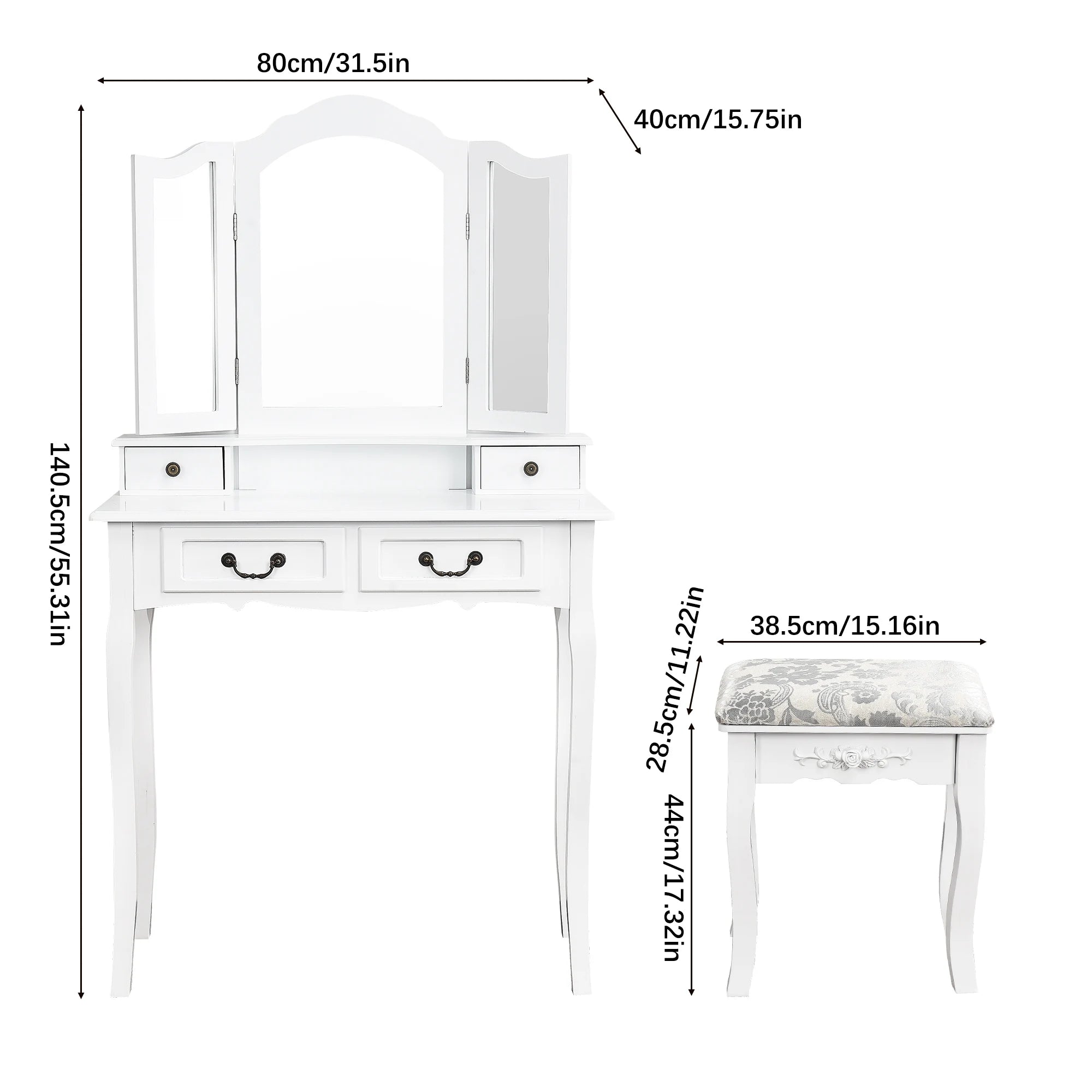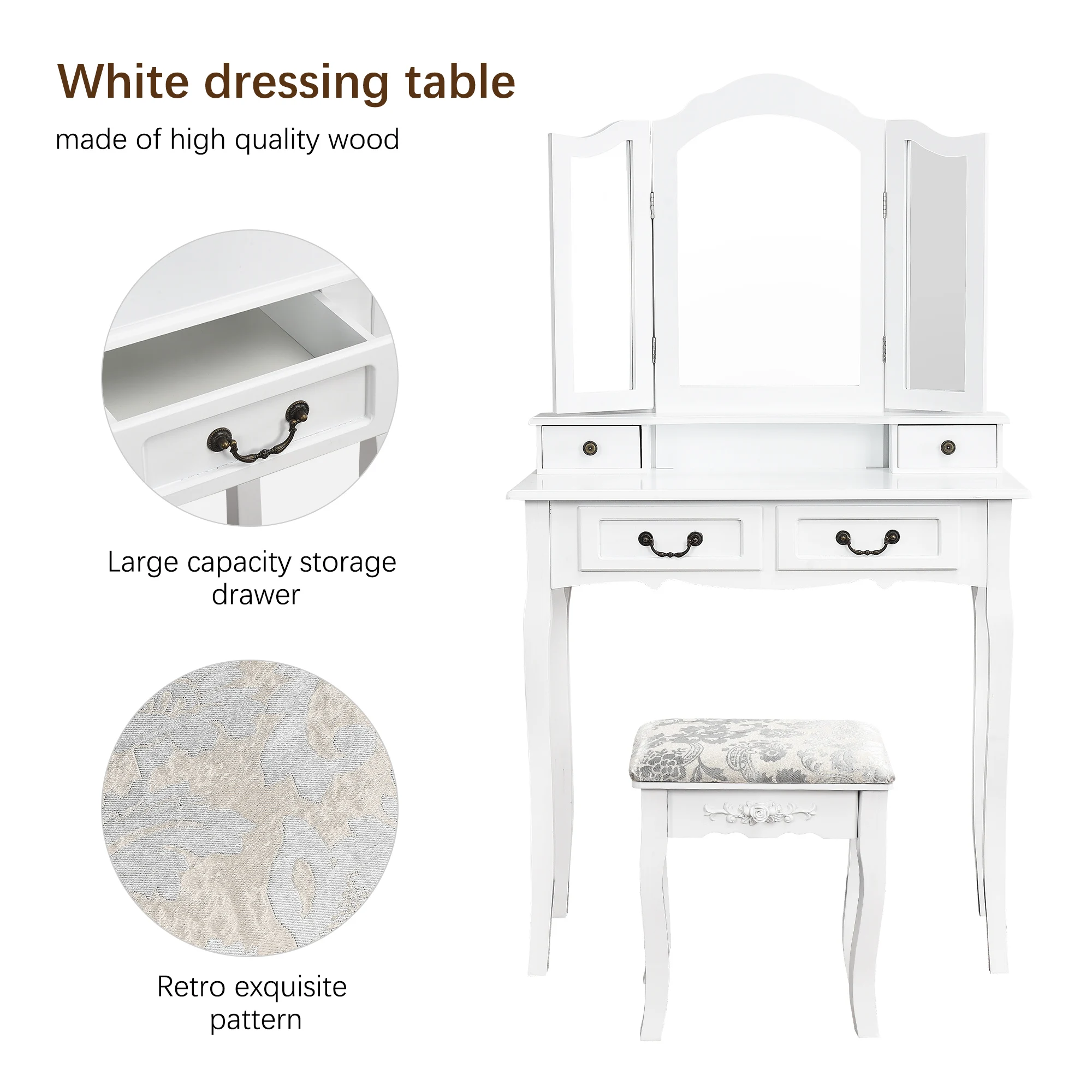 Modern Dressing Table with Mirror,Cushioned Stool and 4 Drawers,Dressers,vanity table with drawers Bedroom Furniture