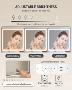 【Adjustable lighting】Three colors of LED lights can be switched at will, whether it is daily natural light, warm light or professional cold light, which allows you to perfectly show yourself in front of the mirror. The mirror is clear and can easily capture every detail of your face, making your makeup even more delicate and perfect.