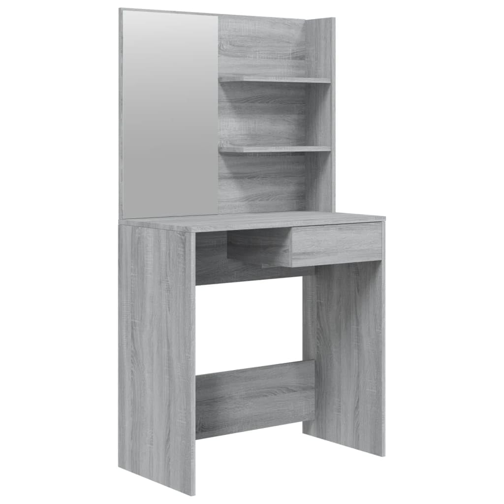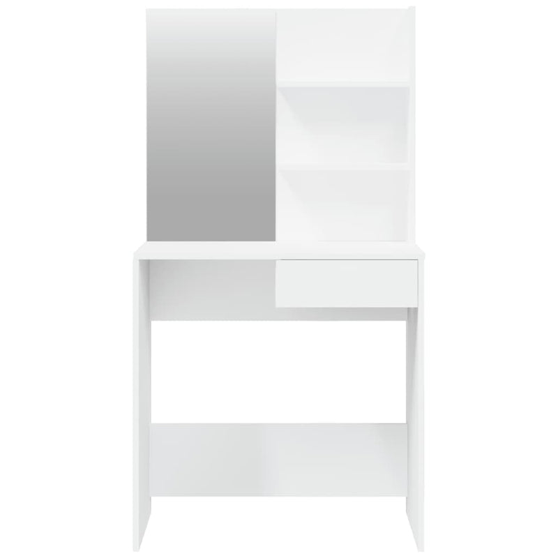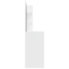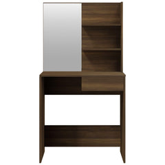 Avec ses lignes droites raffinées et sa forme asymétrique pleine d'originalité, cette coiffeuse ne manquera pas de faire tourner les têtes ! Matériau stable : le bois d'ingénierie est d'une qualité exceptionnelle avec une surface lisse et présente également résistance, stabilité et résistance à l'humidité.Miroir utilitaire : la table de maquillage avec miroir est parfaite pour votre routine beauté quotidienne. Le miroir vous permet de prendre soin de la peau de votre visage et de vous maquiller aussi !Grand espace de rangement : le dessus de la coiffeuse, les étagères à deux niveaux sur la table et un tiroir sous la table offrent suffisamment d'espace pour un accès facile à vos produits de maquillage, bijoux et essentiels de tous les jours.Design moderne : le design moderne présente des lignes épurées et des looks minimalistes dans le cadre du style de design d'intérieur. Avertissement :Afin d'éviter qu'il ne bascule, ce produit doit être utilisé avec le dispositif de fixation murale fourni. Remarque :Chaque produit est livré avec un manuel de montage dans la boîte pour un montage facile.