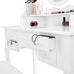 - TABOURET CONFORTABLE: Pas seulement une coiffeuse avec miroir et tabouret, mais une expérience complète. Le tabouret coiffeuse inclus est orné de roses et d'une assise au style romantique. C'est le lieu parfait pour s'asseoir, se détendre et se transformer.