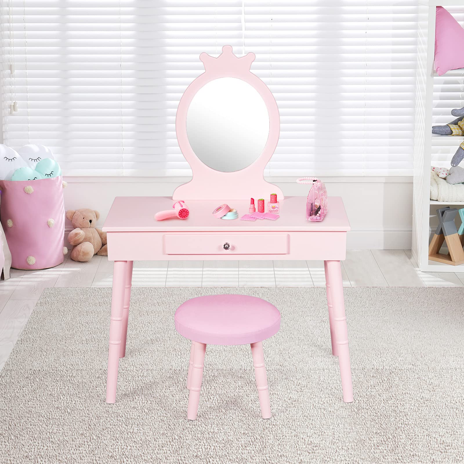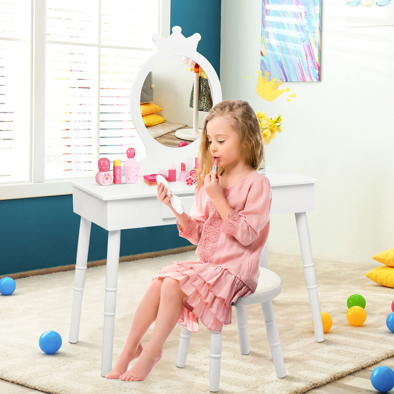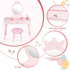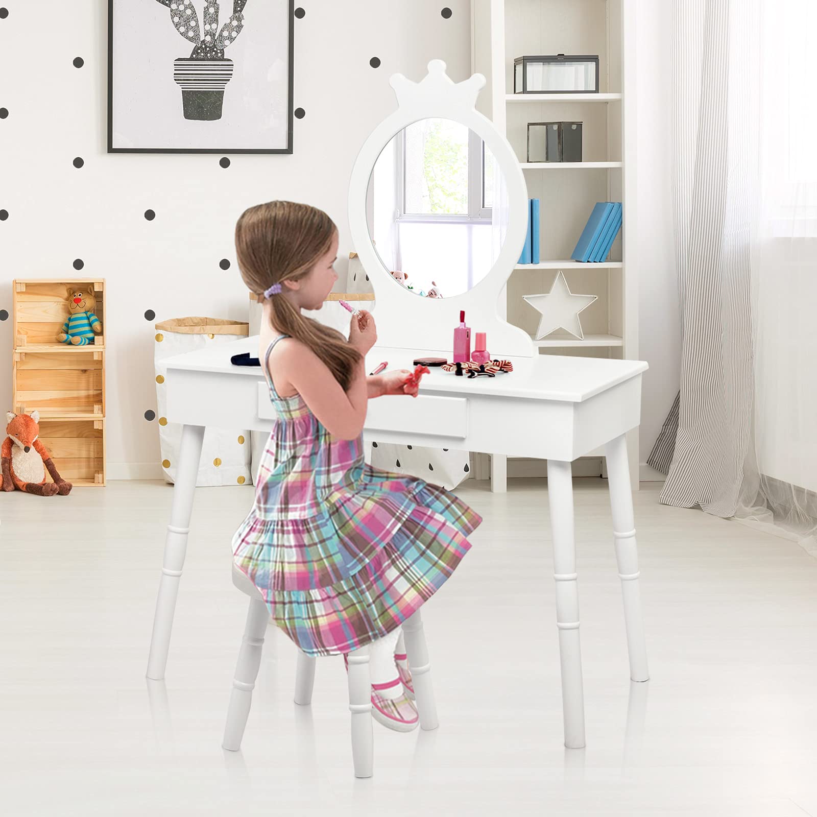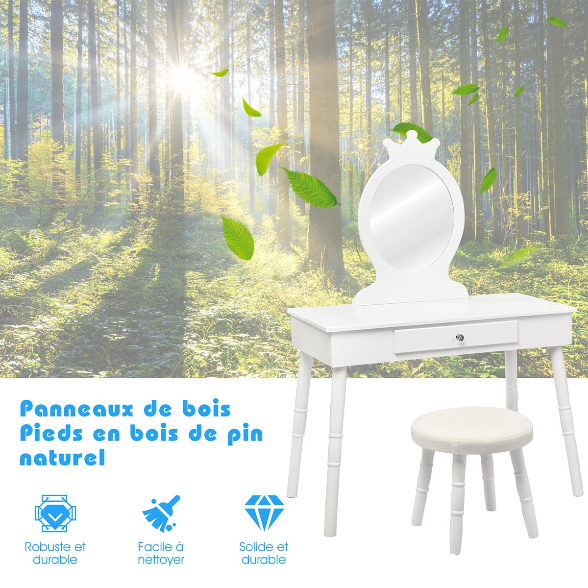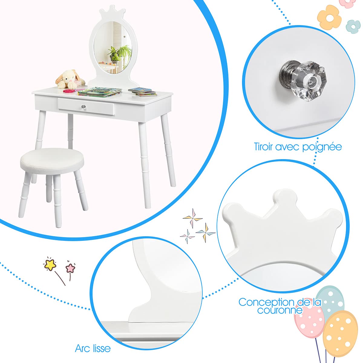 - 💖Coiffeuse enfant fille sûre : Notre coiffeuse a une surface lisse qui ne rayera pas la peau de votre enfant. Les bords de table sont arrondis pour éviter de heurter votre enfant. Le matériau est du bois de haute qualité. C’est sûr et inoffensif. Vous pouvez l'utiliser pour votre enfant sans crainte.