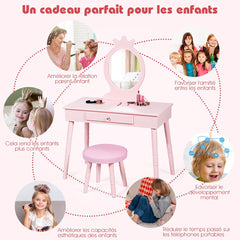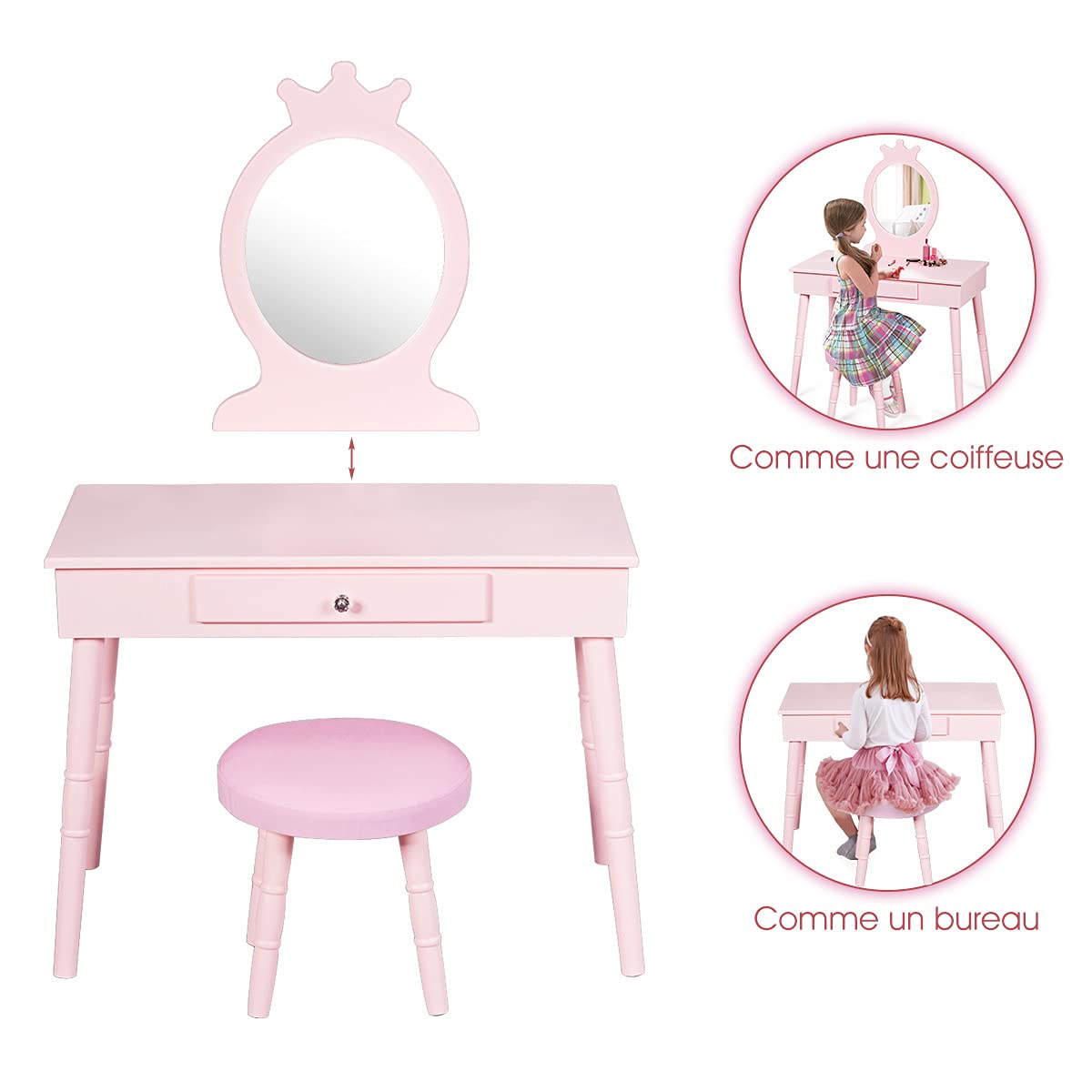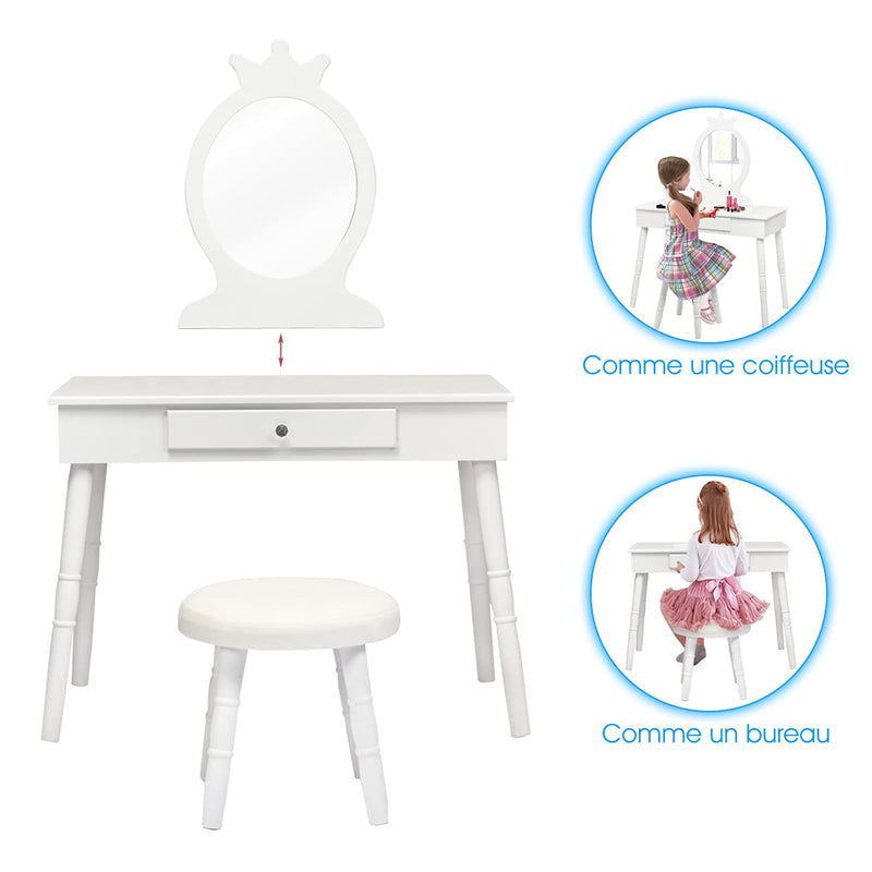 - 💖Coiffeuse enfant 2 en 1 : Le miroir de notre coiffeuse enfant fille est amovible, grâce auquel, à part d'une table de maquillage, elle peut également être utilisée comme un bureau avec le miroir retiré. les enfant peuvent l'utiliser pour travailler, se dessiner etc.