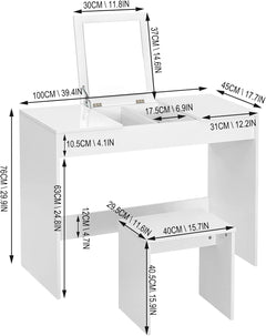 - Informations sur la taille et l'emballage: ❤ Table: 100×45×76 cm (L*L*H), Miroir: 37×30 cm (L*H), Tabouret: 40×29,5×40,5 cm (L*L*H); Dans le colis: 1x coiffeuse avec miroir+1x tabouret (N. B.: la décoration est exclue).Le corps du produit est fabriqué à partir de matériaux à base de bois certifié FSC.