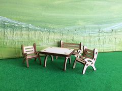 - Comprend : – 1 x, 1 x banc de jardin table et 2 chaises en bois