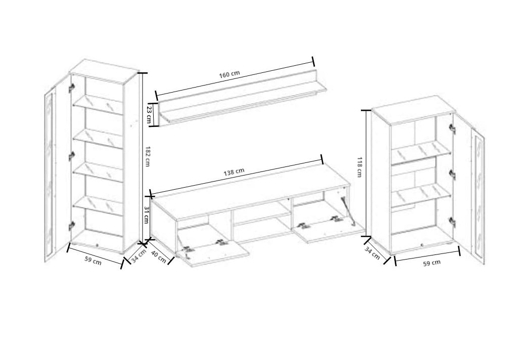 - Choix Optimal pour le Salon : les meubles muraux RITA sont un ensemble complet de meubles élégants créés pour les espaces de vie et les salons modernes. Les finitions soignées et les matériaux de haute qualité assurent que les meubles répondent pleinement aux attentes de chaque client.