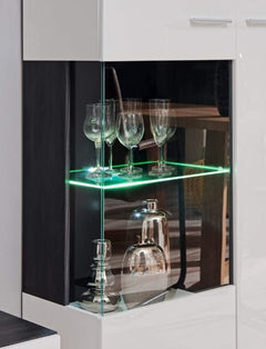 - Accents Modernes : Les poignées du meuble et les pieds en plastique résistant apportent une touche de modernité à l'ensemble de la composition. Le verre de la vitrine, en verre trempé de haute qualité, confère au meuble un caractère élégant et moderne.