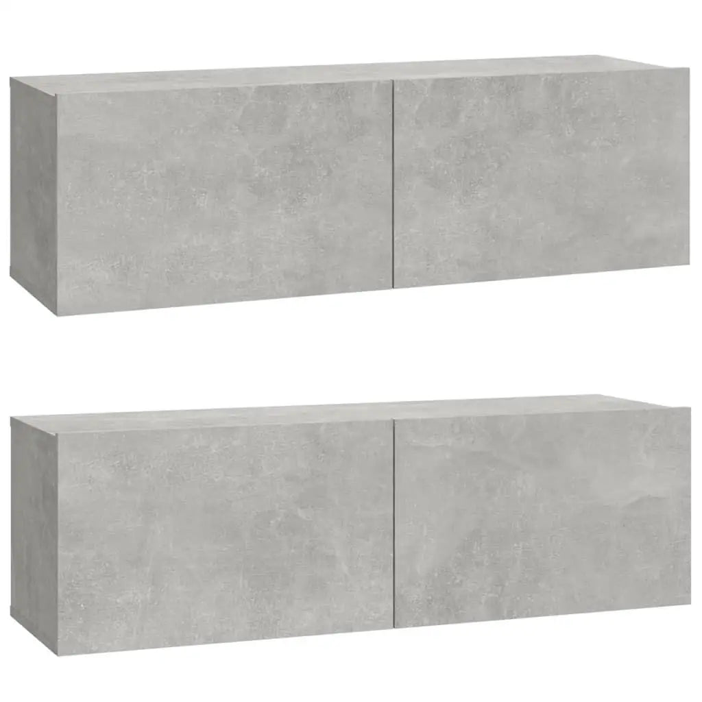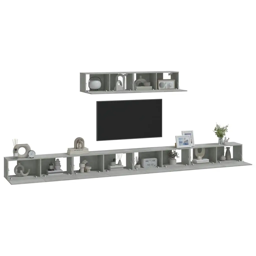 Ensemble meuble tv suspendus 6 Pièces en bois gris béton