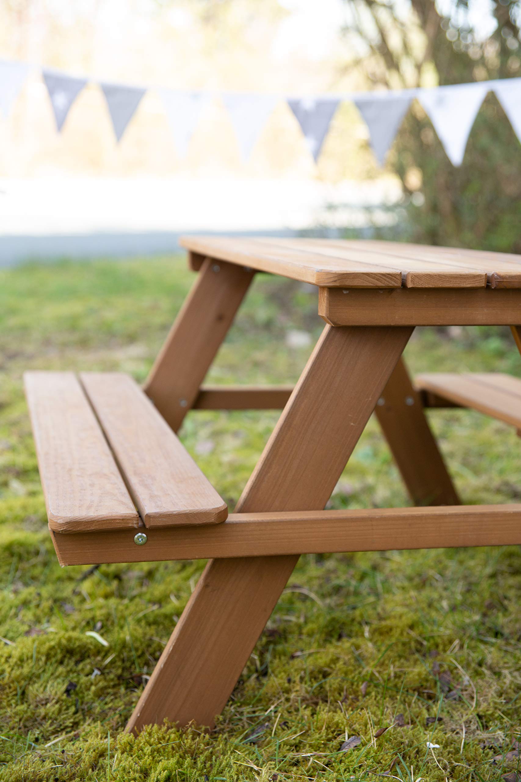 - 4 SEATERS SUITABLE FOR TODDLERS - The wooden picnic table can accommodate 4 children; the seating set is designed with rounded corners and edges to ensure safe use for babies from 12 months