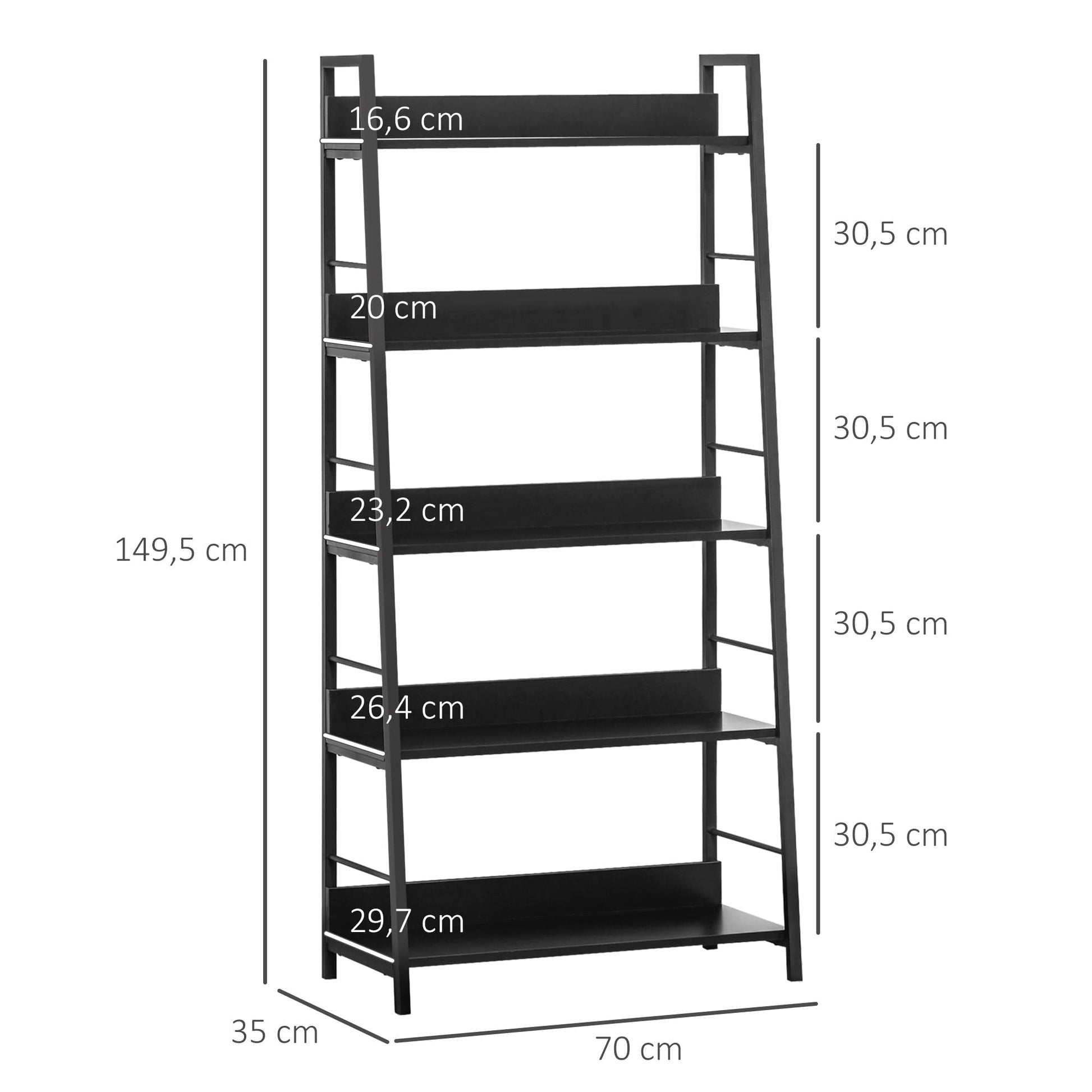 - ASSEMBLAGE FACILE : Montage facile et rapide grâce au manuel d'assemblage illustré fourni, Dim. totales : 70L x 35l x 149,5H cm, Charge max. recommandée : 25 kg (au total), 5 kg (par étagère)