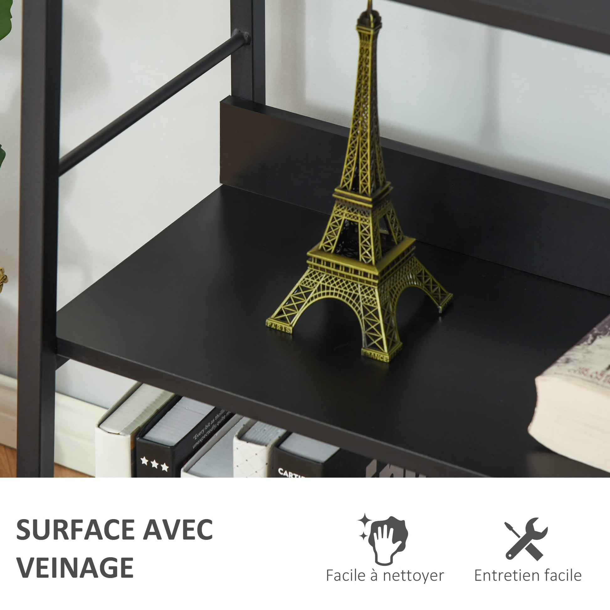 - POLYVALENT : Étagère à livres style échelle avec un petit rebord arrière pour empêcher vos livres, fleurs et autres objets de tomber. Elle peut être utilisée comme échelle pour plantes, présentoir à fleurs, bibliothèque, meuble rangement de salle de bain, etc