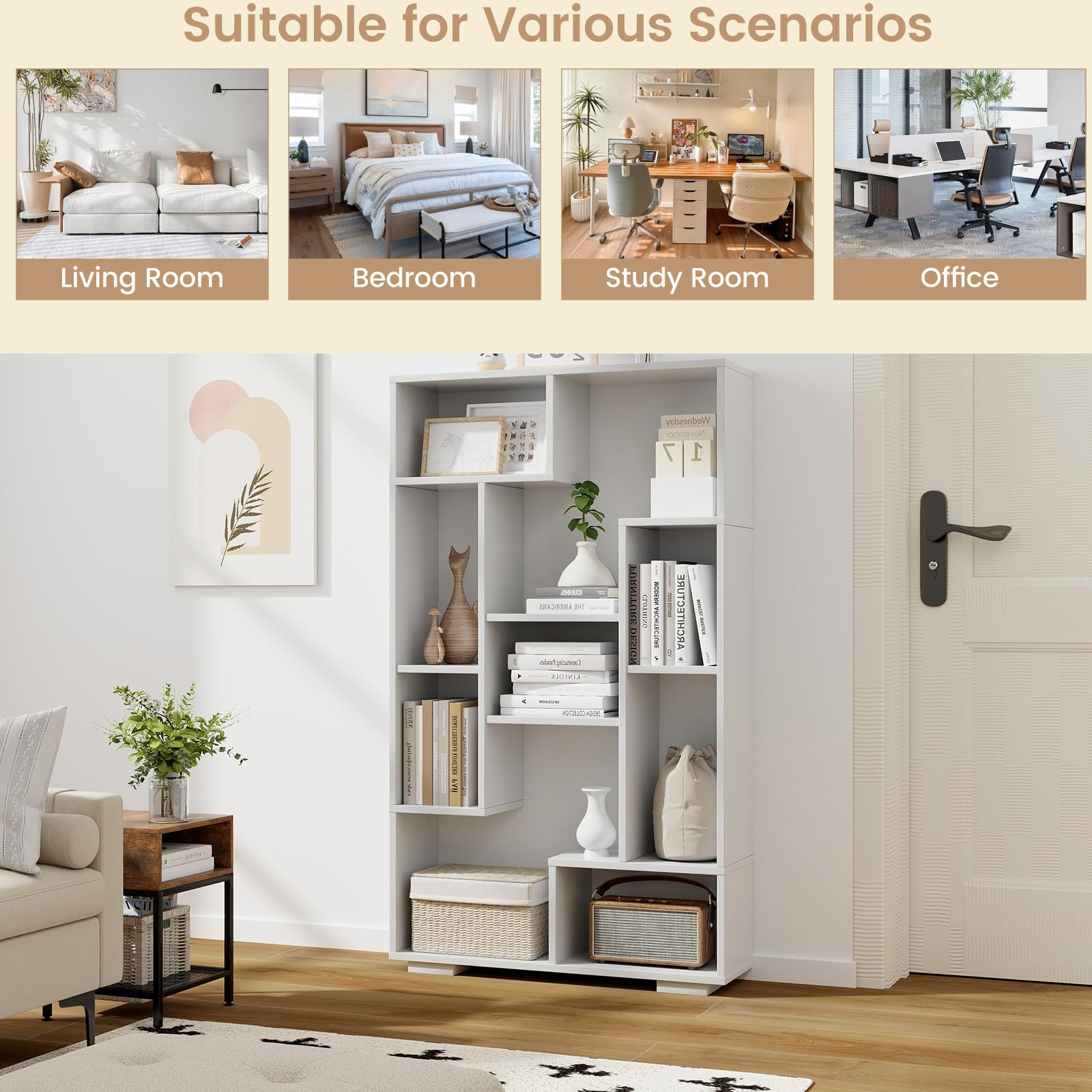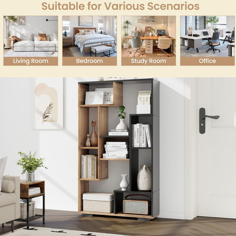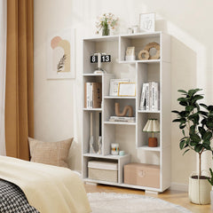 - ~Esthétique Géométrique pour une Maison Elégante~Avec son design géométrique moderne, cette étagère sur pied offre non seulement un espace de rangement pour les livres, mais aussi une œuvre d'art qui met en valeur l'esthétique de votre appartement. Disponible en blanc ou noir + naturel, elle s'intègre facilement dans une variété de styles d'intérieur et ajoute une touche de style et d'élégance à la pièce.