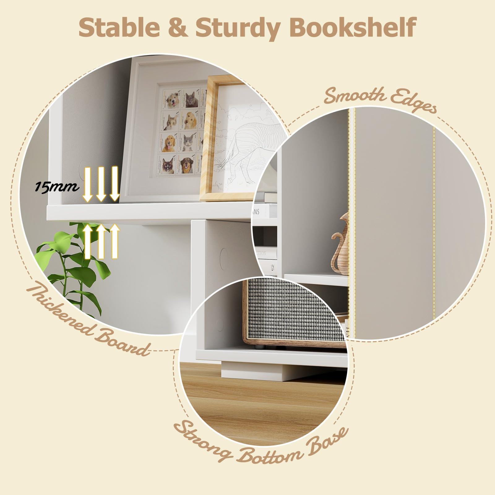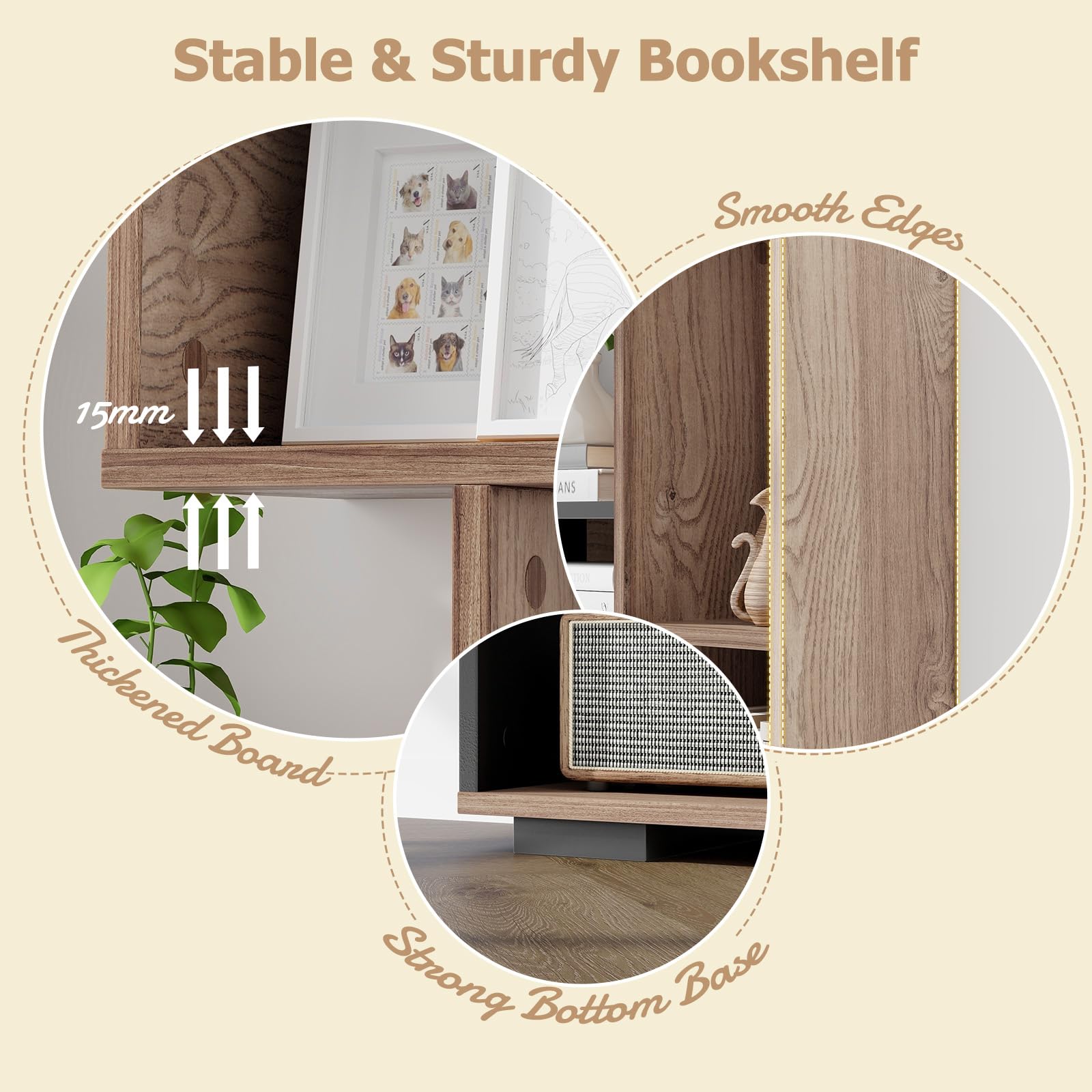 - ~Meuble de Rangement Stable et Pratique~Cette bibliothèque de rangement est fabriquée en panneaux de particules de bois de 15 mm d'épaisseur, qui, en combinaison avec une construction robuste de pieds de support, assurent stabilité et durabilité. Le haut de l'étagère peut supporter jusqu'à 15 kg, et chaque étagère peut supporter jusqu'à 10 kg, ce qui vous permet de répondre facilement à votre collection de livres et à vos besoins décoratifs.