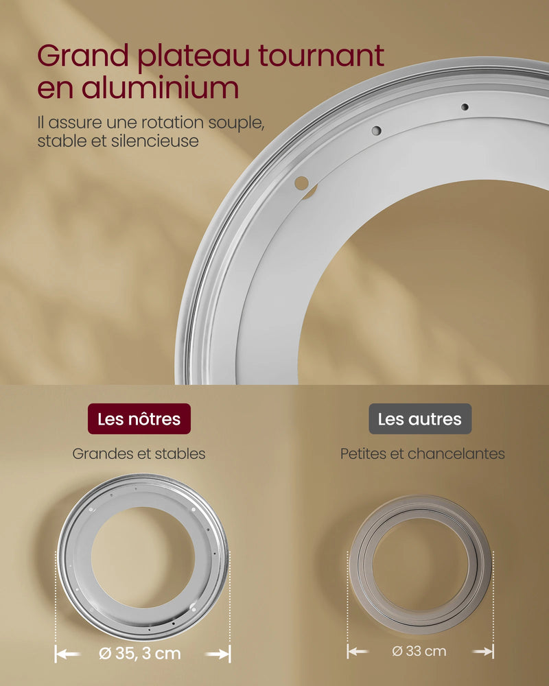 [Sécurité et stabilité] Cette étagère rotative est livrée avec un kit anti-basculement pour plus de sécurité. Elle comprend également 4 pieds réglables pour assurer sa stabilité,même sur des sols légèrement irréguliers