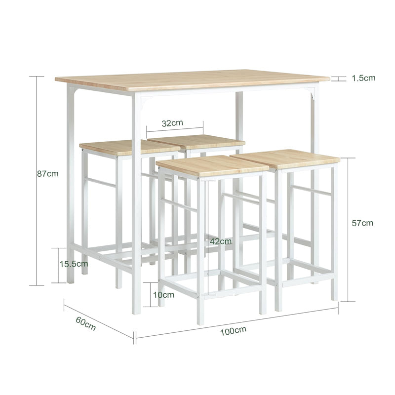 - Dimensions de table (L x l x h) : 100 x 60 x 87cm. Dimensions de tabouret (L x l x h) : 32 x 32 x 57cm.