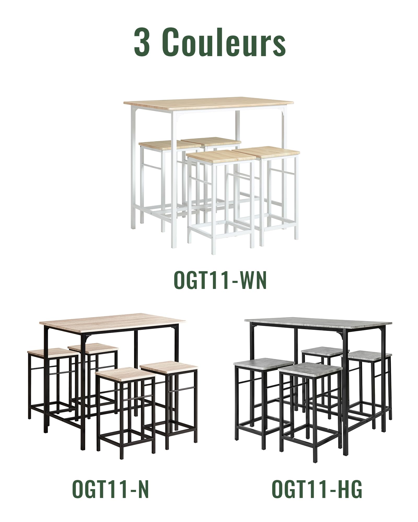 - Jusqu'à 3 couleurs disponibles: naturel (OGT11-N), gris (OGT11-HG) et blanc (OGT11-WN). Ensemble de 3 pièces: OGT03-N (1x table + 2x chaises), OGT10-N, OGT10-HG (1x table + 2x tabourets), Set de 5 pièces: OGT11-N, OGT11-HG, OGT15-N, OGT15-HG (1x table + 4x tabourets), OGT14-N( (1x table + 4x chaises).