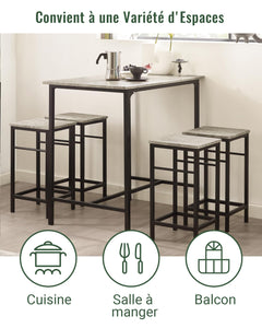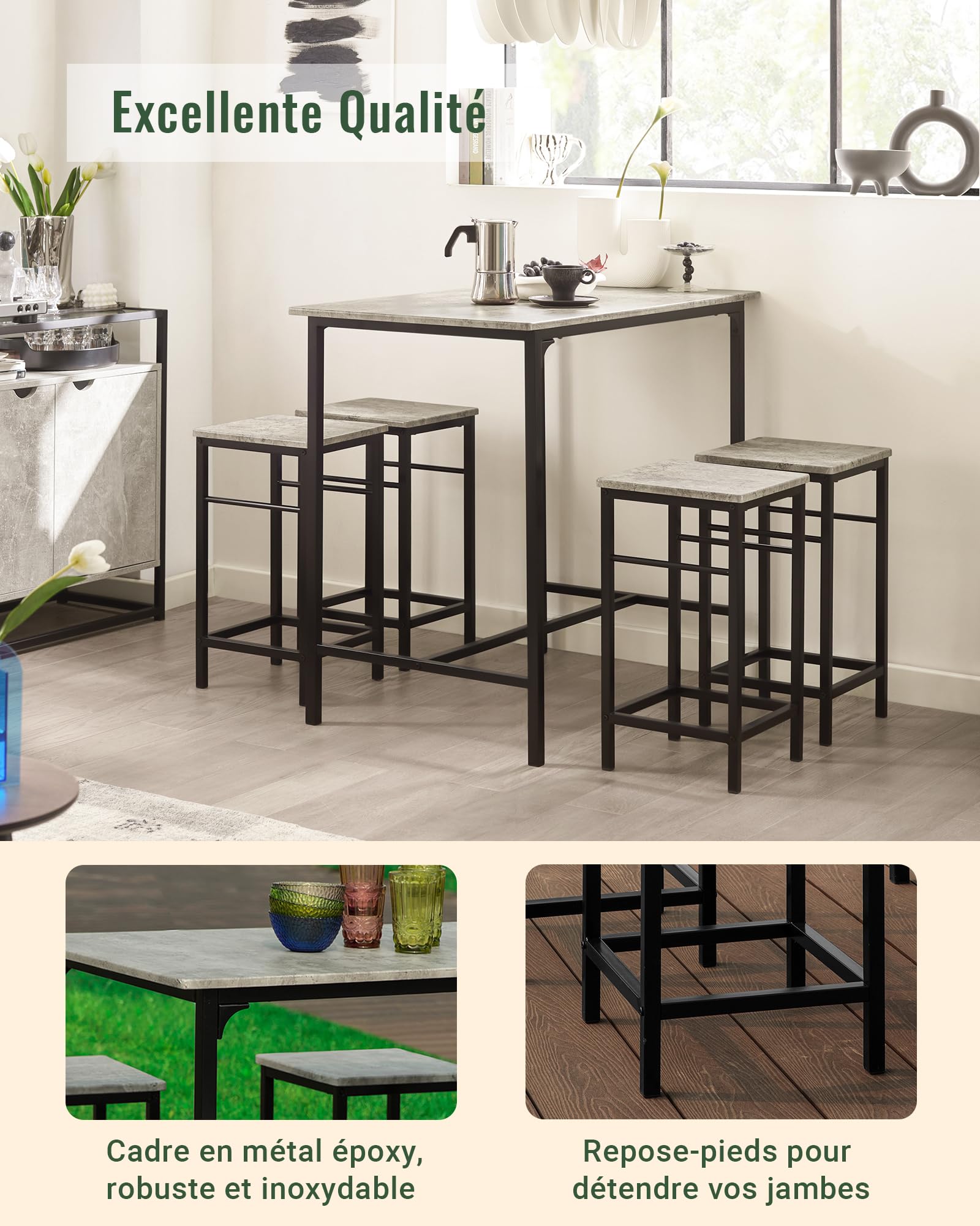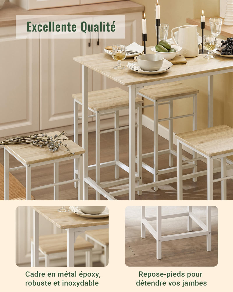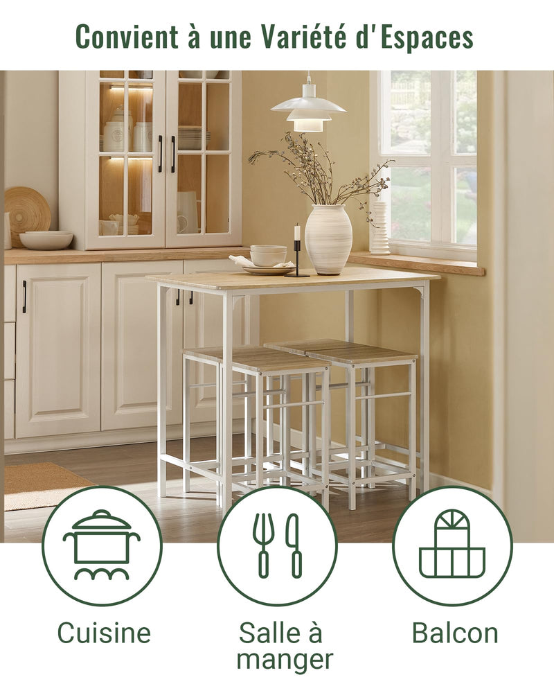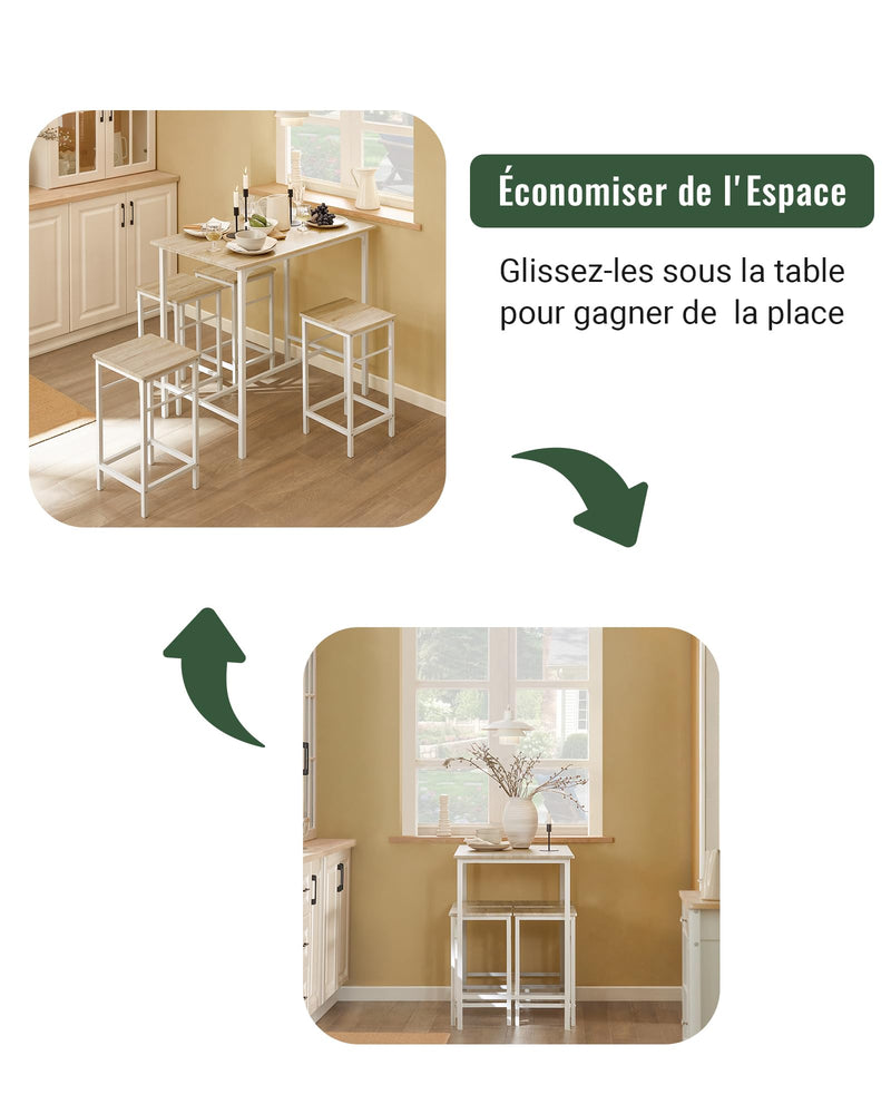 - Capacité Max : Table : 60kg. Tabouret: 120kg. À monter soi-même facilement.