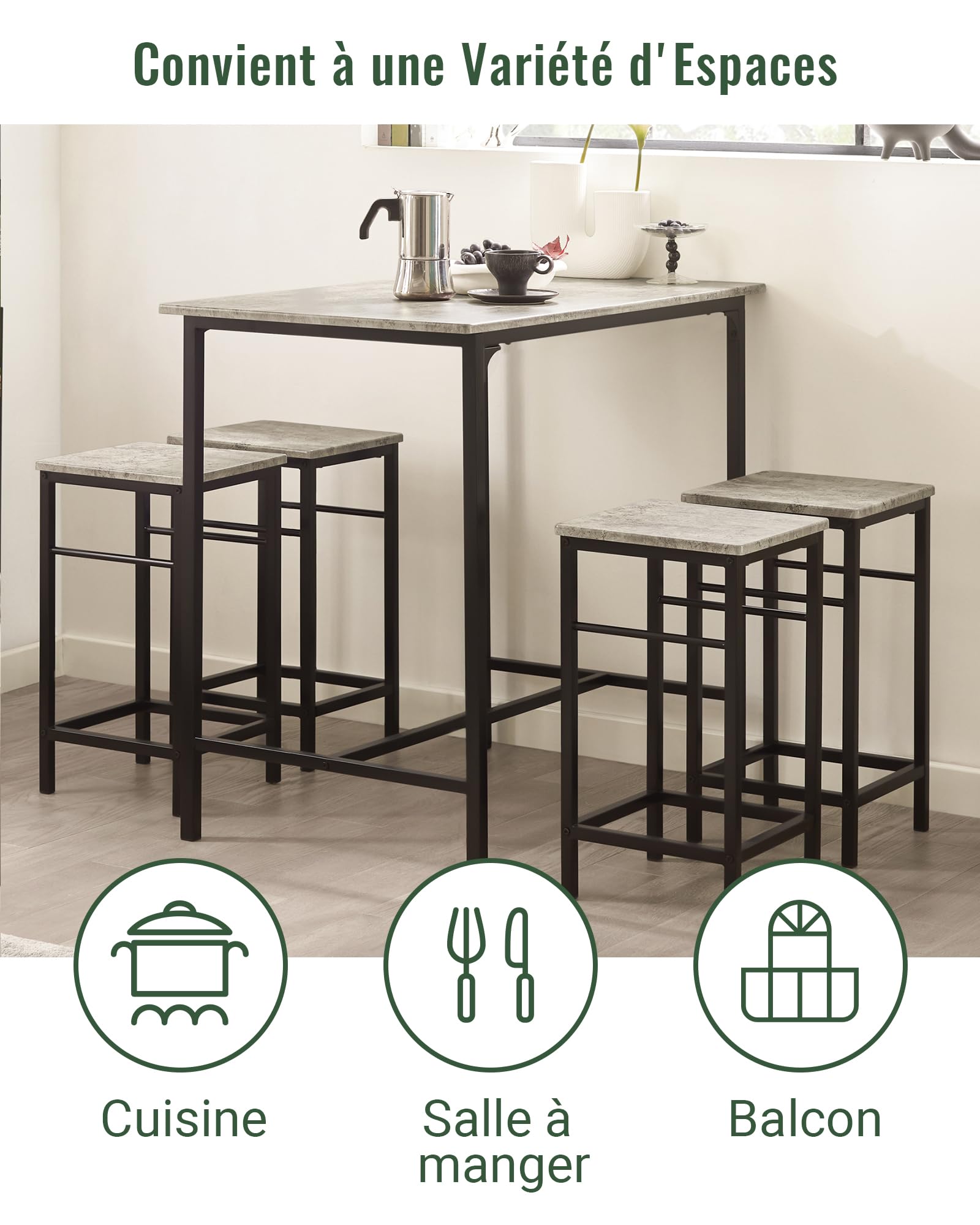 - Ensemble table de bar + 4 tabourets avec repose-pieds. Idéal pour le balcon, le bistrot, dans la salle à manger ou la cuisine.