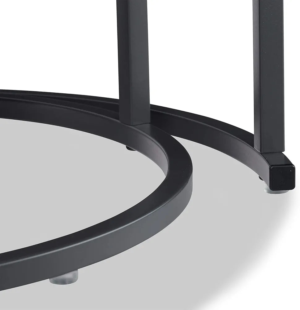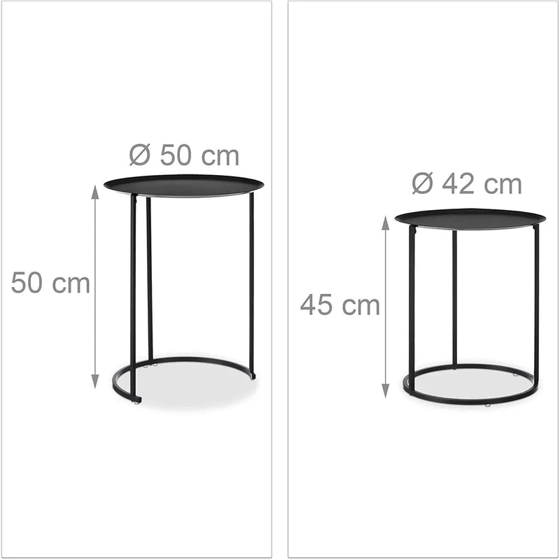 Les tables d'appoint rondes en lot de 2 vous offrent de nombreuses possibilités d'utilisation. Utilisées en tant que tables basses elles vous permettent d'avoir les collations, magazines ou smartphones à portée de main à tout moment. La conception simple et fonctionnelle des tables gigognes les rend également idéales pour mettre en valeur des vases, des plantes ou des bougies. Le rebord surélevé des tables évite les petits accidents Si nécessaire, il suffit de glisser les 2 tables de rangement l'une sous l'autre pour qu'elles prennent très peu de place.Lot de 2 tables d’appoint en détail- Dimensions grande table H x D : env. 50 x 50 cm / env. 2,5 kg- Dimensions petite table H x D : env. 45 x 42 cm / env. 1,9 kg- Charge maximale : 8 kg- Matériau : acier- Aspect : anthracite Lot de tables d’appoint décoratives- Surface pour vos collations, télécommande etc.- Mettez vos accessoires en scène- Surface plane avec rebord surélevé- Design élégant fonctionnel pour votre intérieur- Tables peu encombrantes placées l’une sous l’autre- Patins de protection anti-rayures pour le solContenu de la livraison- 2 x Table d’appoint en pièces détachées- Avec matériel de montage- Avec instructions- Livré sans objets de décoration